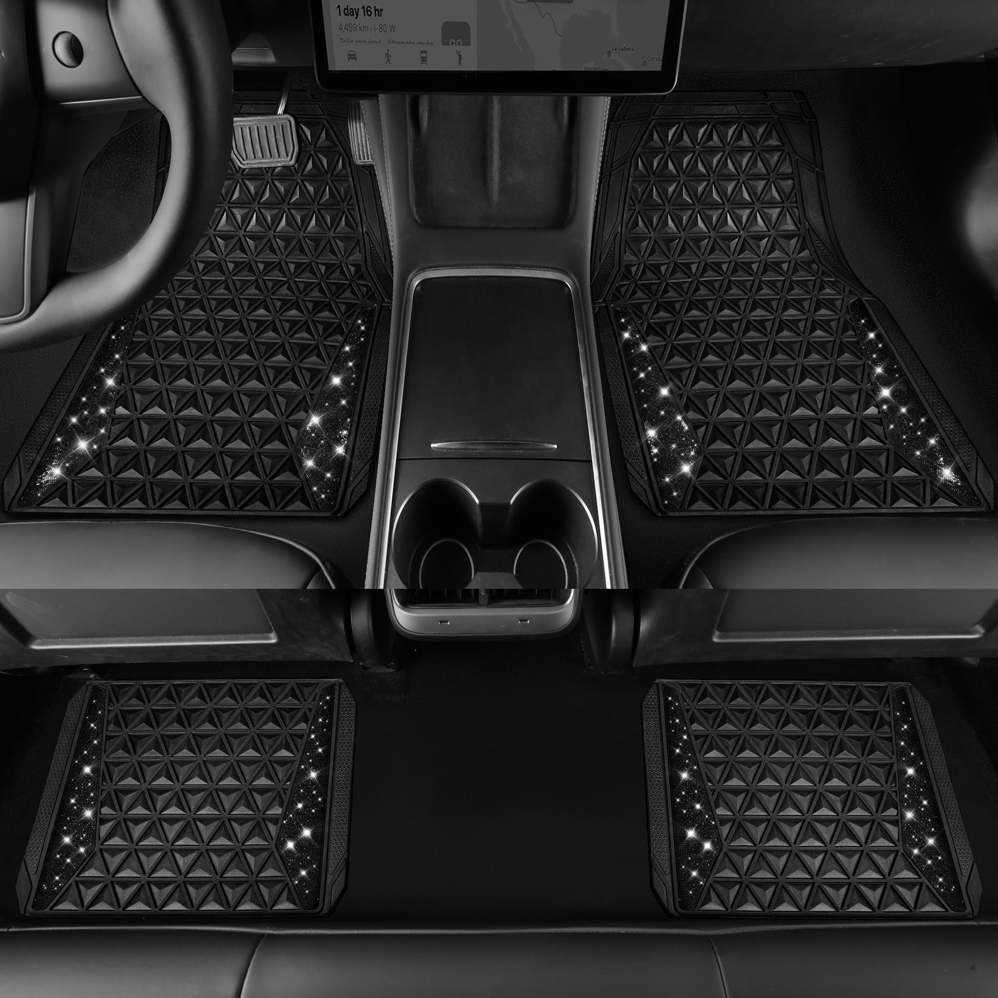 BLING DIAMOND RUBBER: Made of high quality rubber, side on the rubber car mats has shining rhinestone, 4 pcs full set. The CAR PASS diamond rubber car floor mats use for all season. Protect your truck's floors from dirt and debris. Easy to clean. Made of high quality sparkly diamond. Shininig diamonds don't fall out. Glitter in the sun and bring a nice vibe to the interior of your car.