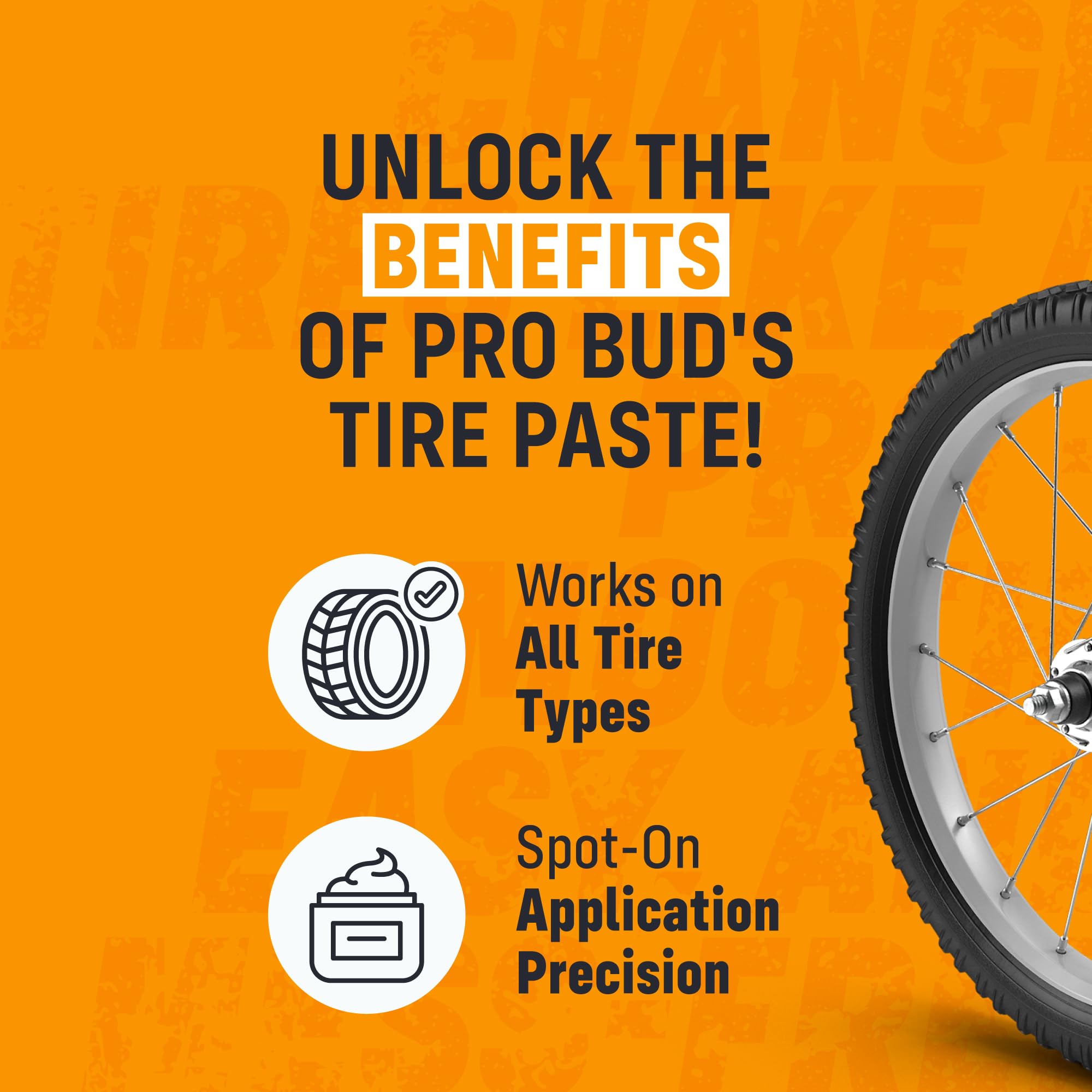 EFFORTLESS MOUNTING: Experience the ease of tire mounting with Pro Bud’s Tire Paste, designed as a superior tire mounting compound. Simplify tire mounting with our tire lube for changing tires, making every tire on or tire off smooth and hassle-free