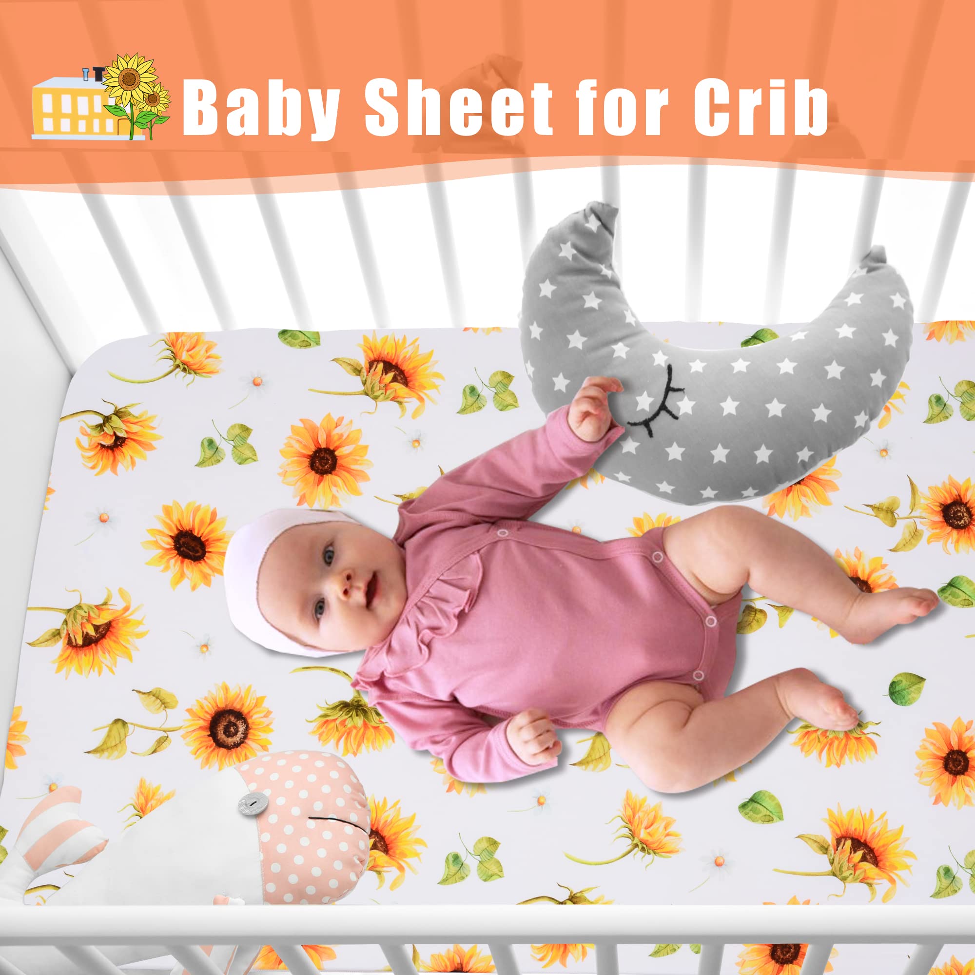 【PERFECT SIZE】Dimension 52*28*5‘’.Our sunflower fitted crib sheet fits all standard crib mattress,making this item perfect for transitioning your little one from their crib to a toddler bed.