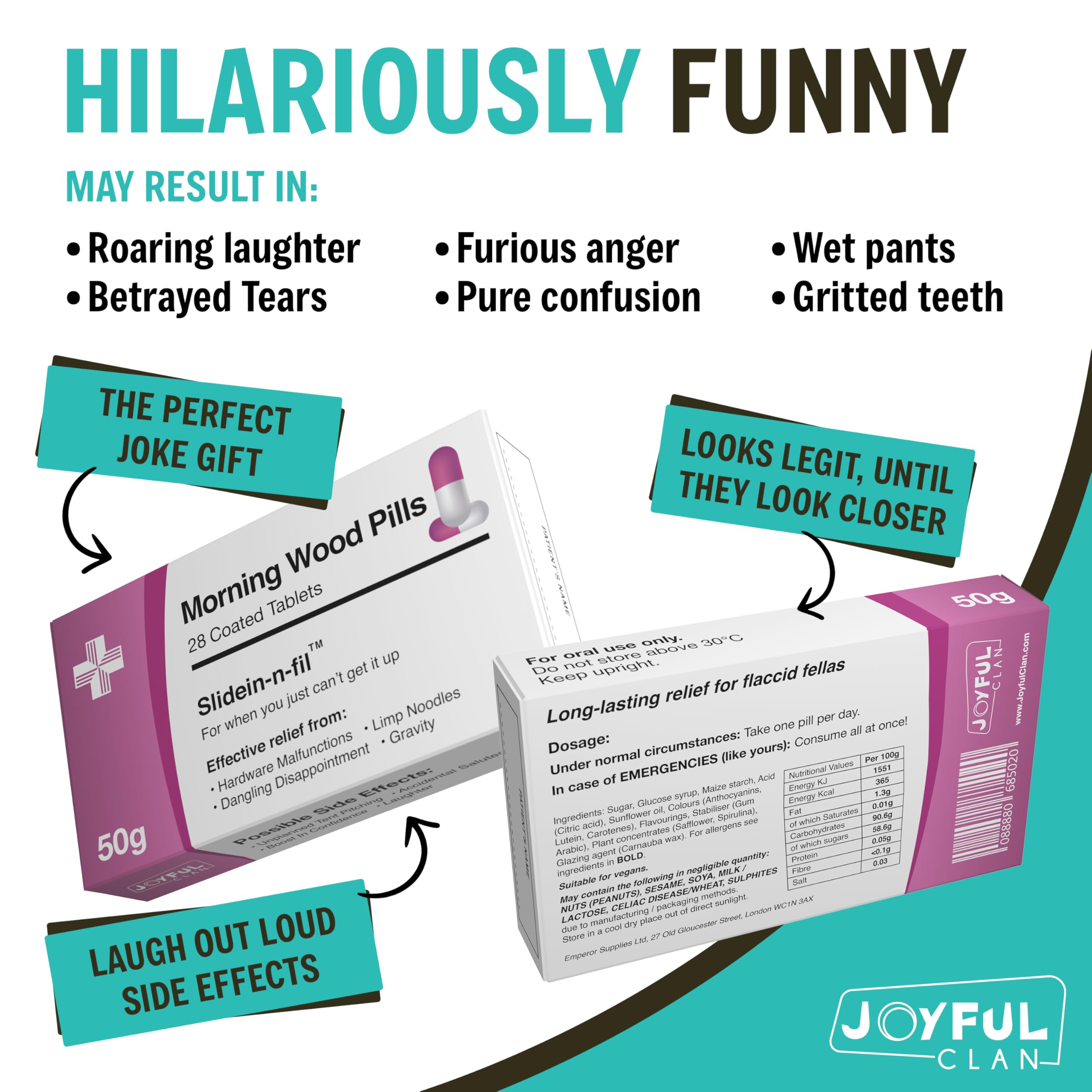 Realistic Design: Looks exactly like professional pills packaging for men; perfect for pranks for adults and office pranks; creates unforgettable reactions; includes delicious vegetarian jelly beans that make this gag gift both funny and tasty