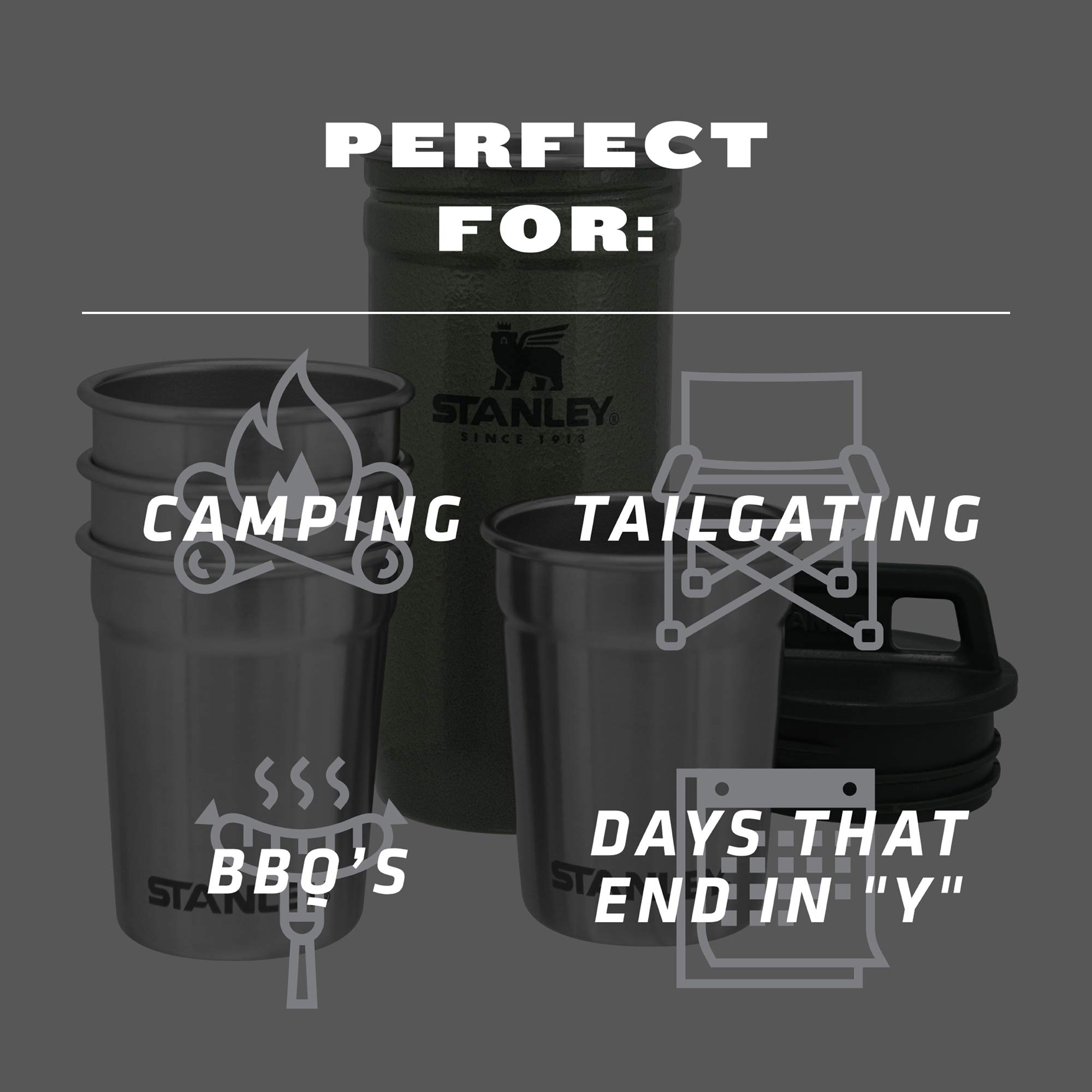LEGENDARY STANLEY QUALITY: Never have to worry about fragility. We’ve crafted the travel shot glasses, liquor flask, and carry case using stainless steel to withstand all adventures. An integrated lanyard means no more losing your flask’s cap.