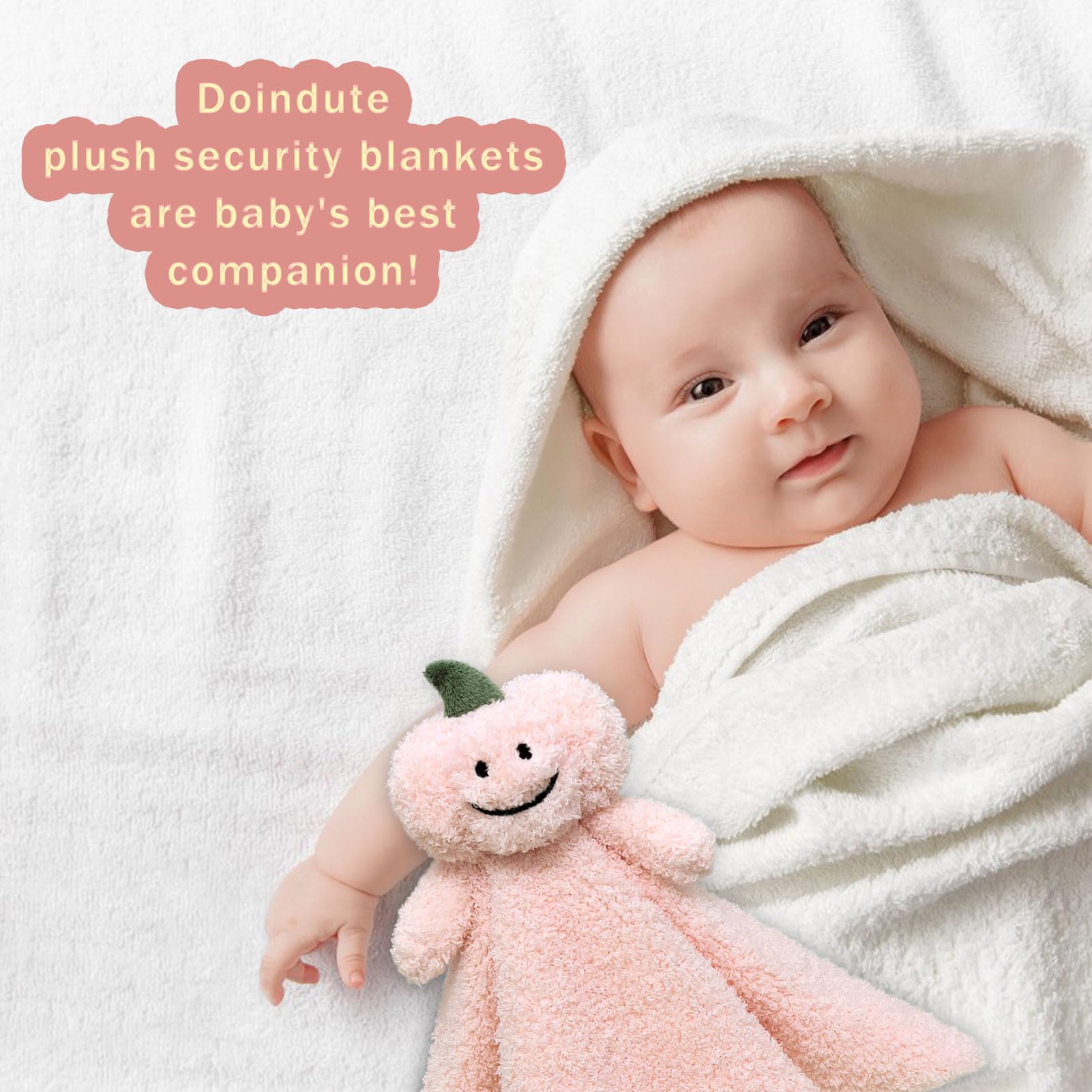 Doindute Baby Pink Pumpkin Soft Stuffed Animal Security Blanket, Plush Pumpkin Character Lovey Blanket, Baby Shower/Nursery Gift, Newborn Infant Toddler Snuggle Blankie for Boys Girls, 14 Inches