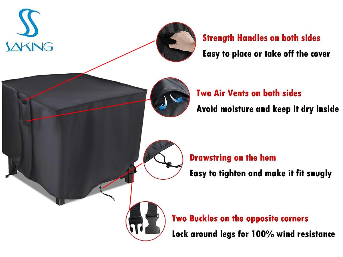 WATERPROOF & ANTI-UV: Saking gas patio firepit covers are made of high-density heavy duty oxford fabric with silver-plated undercoating & waterproof PU layer,providing excellent rain / snow / dust / UV resistance and lasting the lifetime of your fire pits.