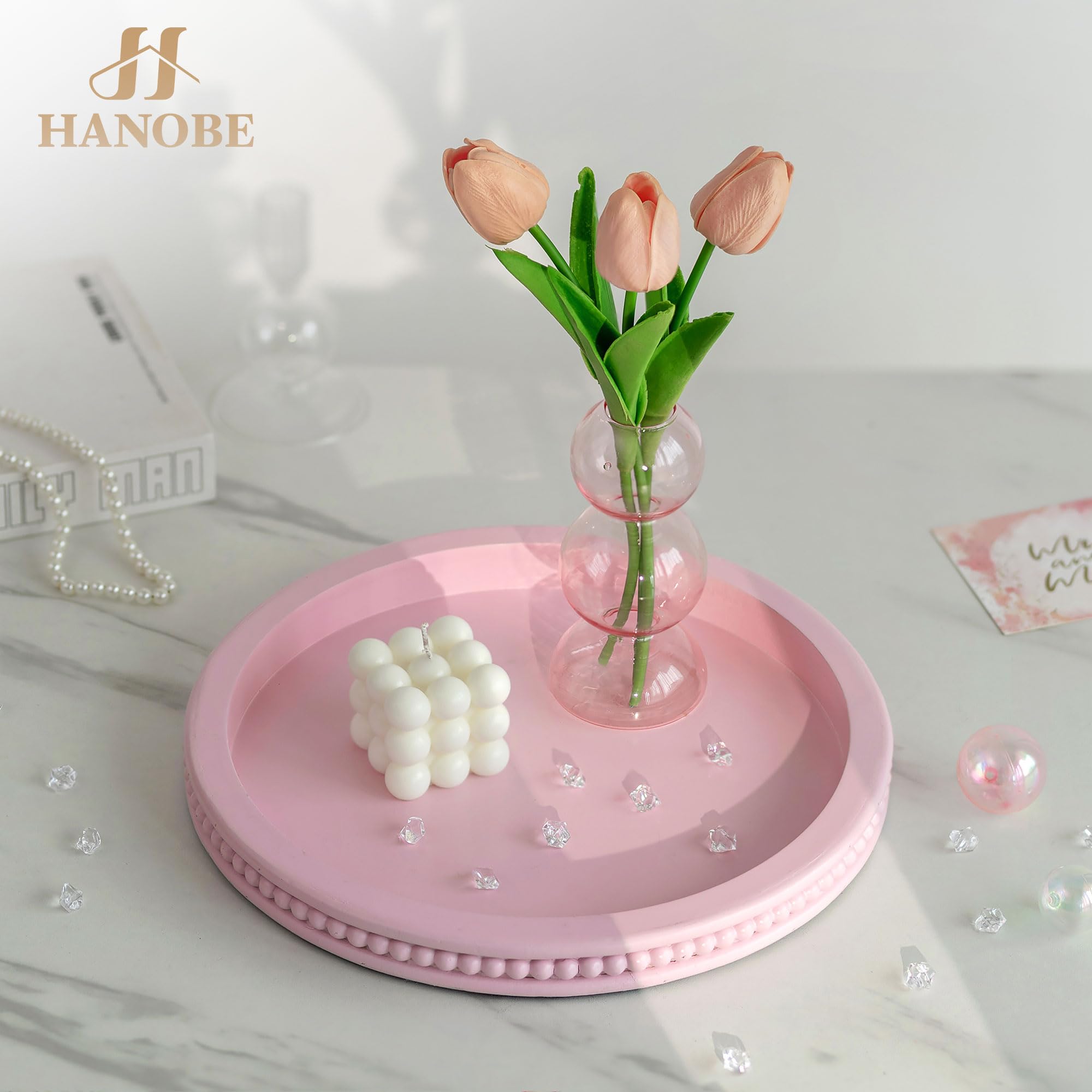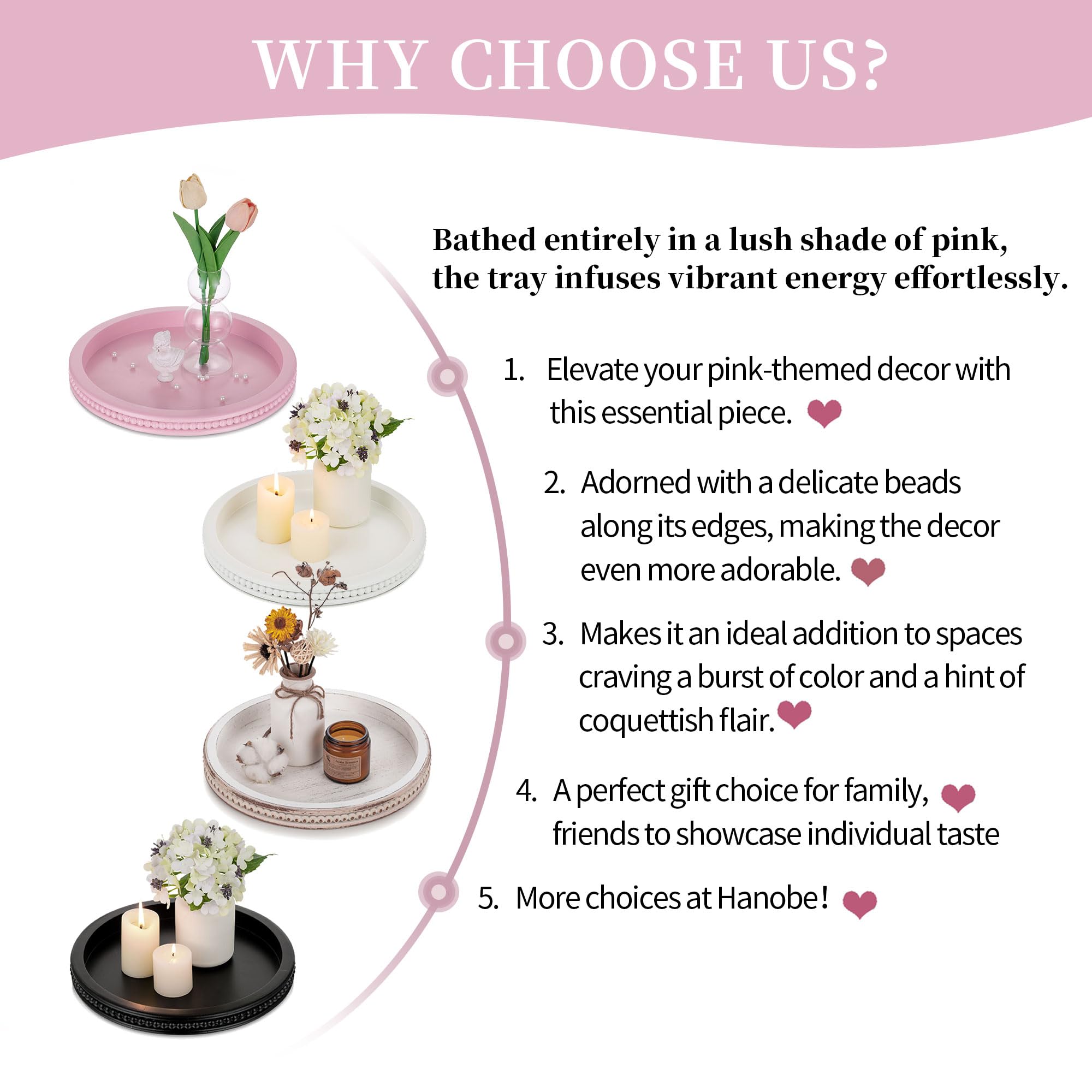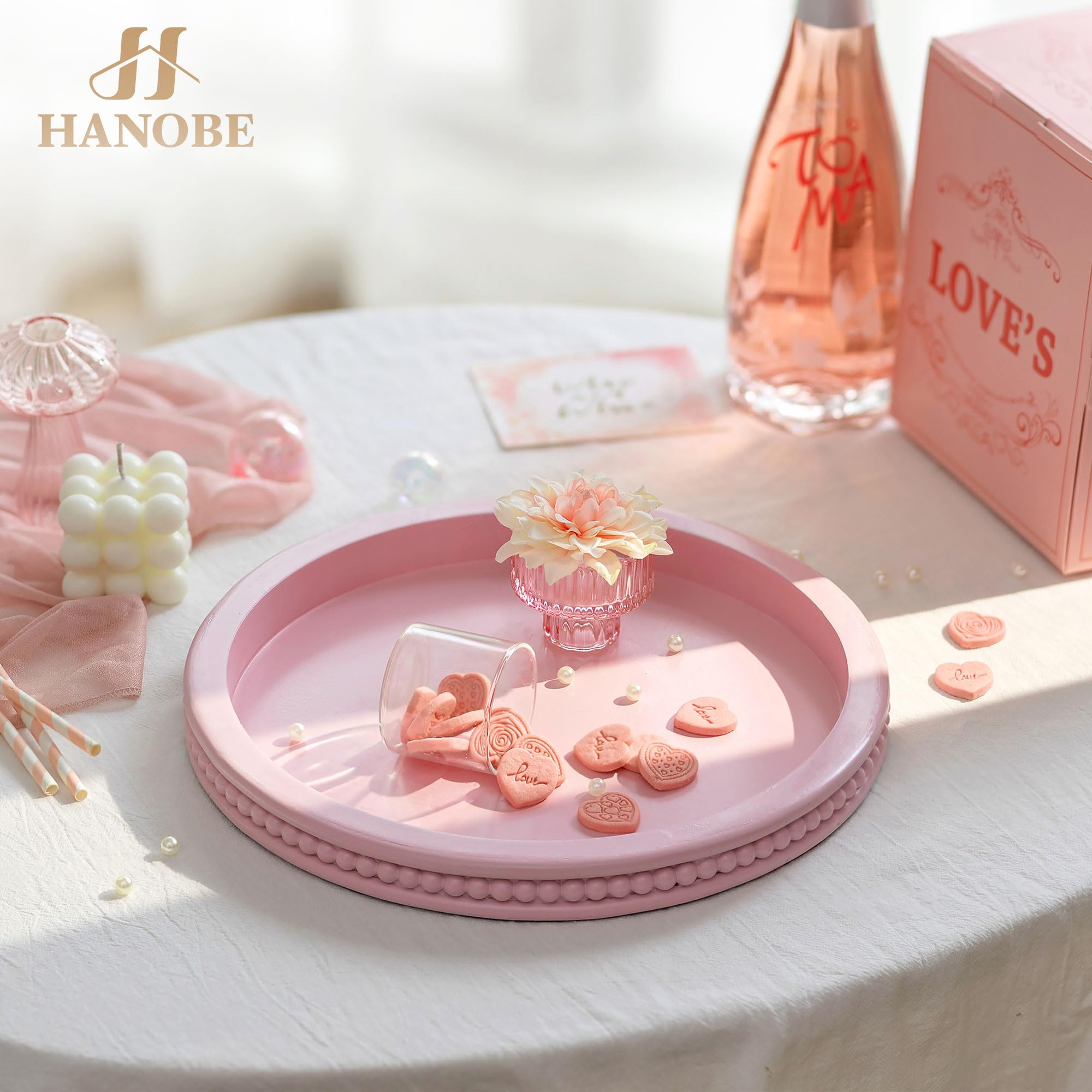 Charming Pink Decor Essential: Elevate your pink-themed decor with this essential piece. The pink round tray for coffee table playful yet elegant design makes it an ideal addition to spaces craving a burst of color and a hint of coquettish flair