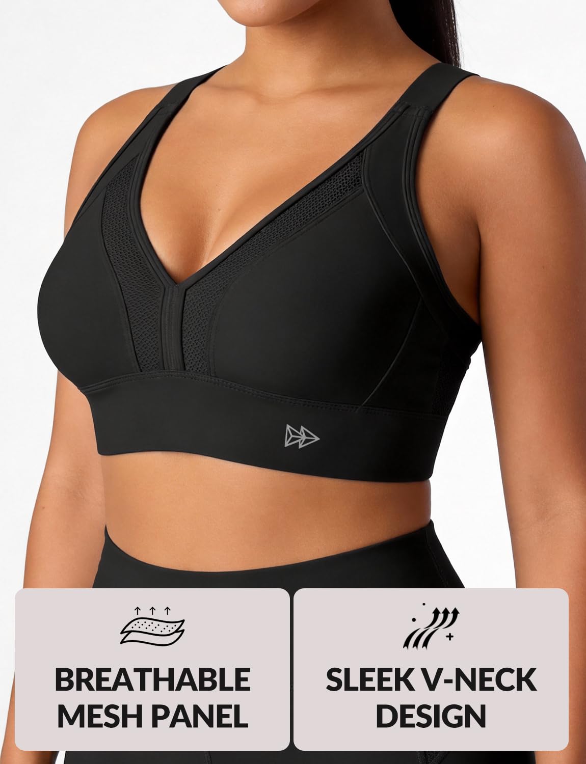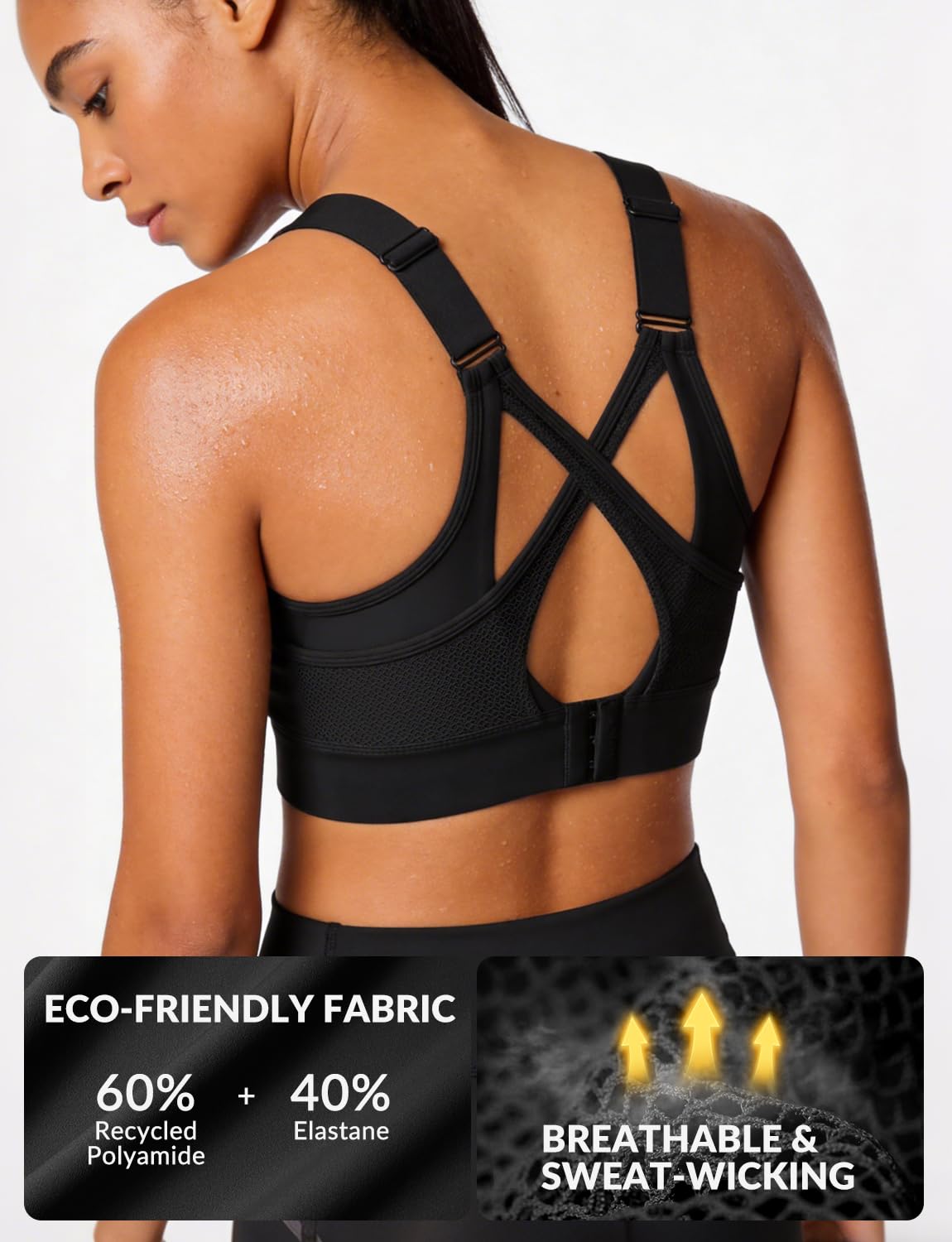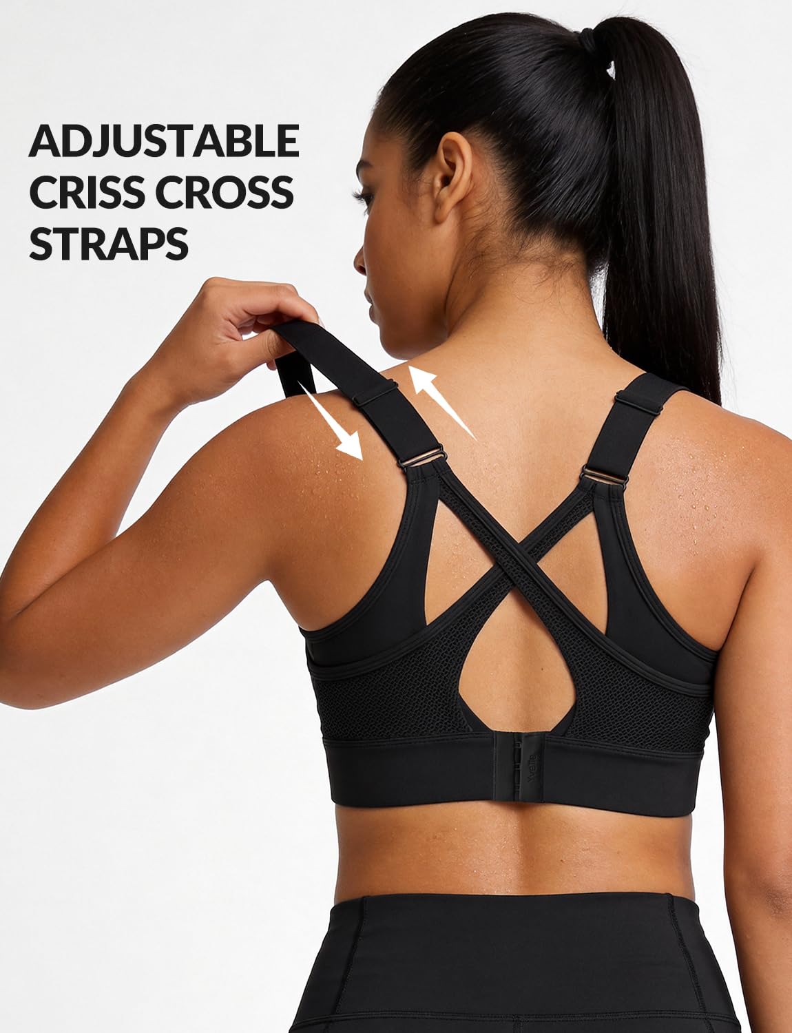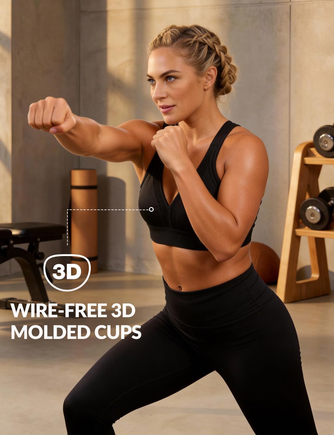 Front Zip Convenience, Locked-In Security: Designed with a front zip closure and inner safety clasp for easy on-and-off without sacrificing security. This high support sports bra stays in place during training, so you can zip up fast and move with confidence.