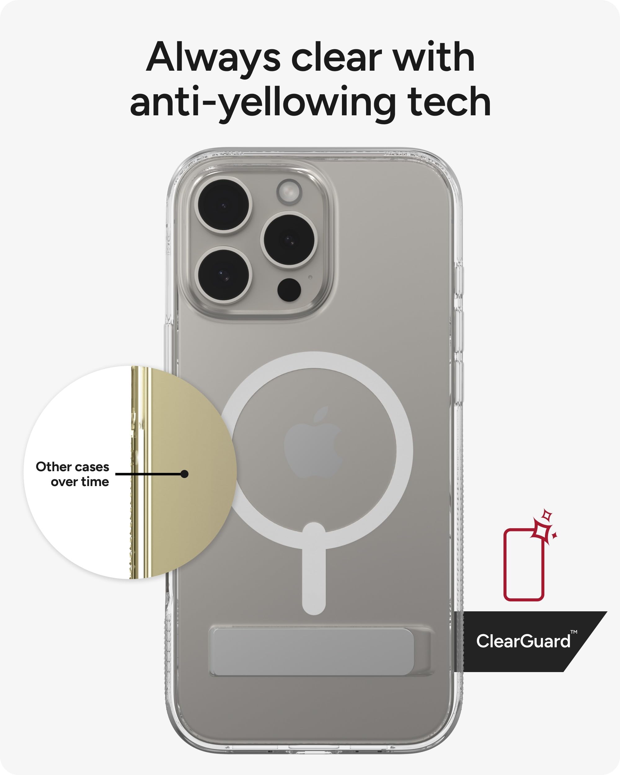 STAYS BEAUTIFUL, STAYS CLEAR: Keep your case looking crystal clear over time with three advanced anti-yellowing technologies and an anti-scratch finish, ensuring your iPhone’s sleek design shines through