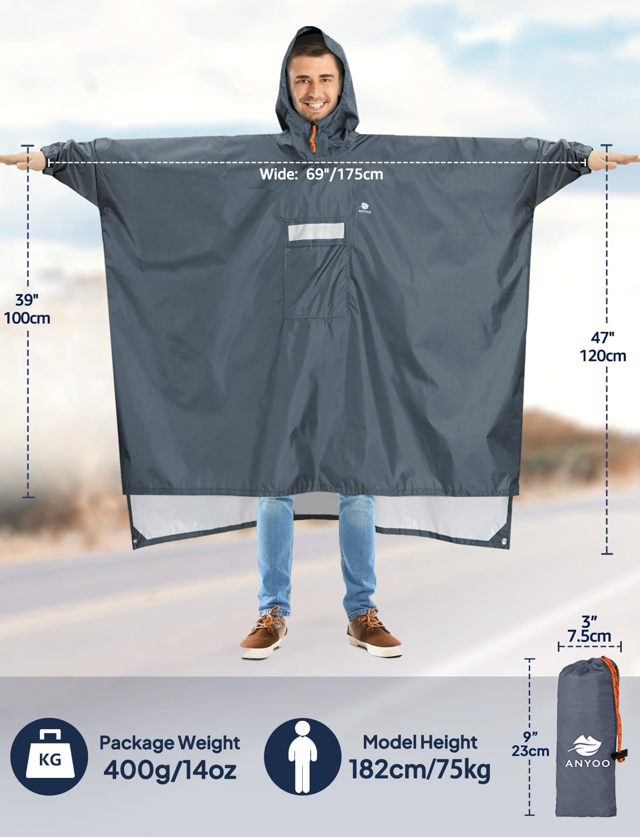 Description Anyoo lightweight waterproof rain poncho for men women with hooded, reusable, one size