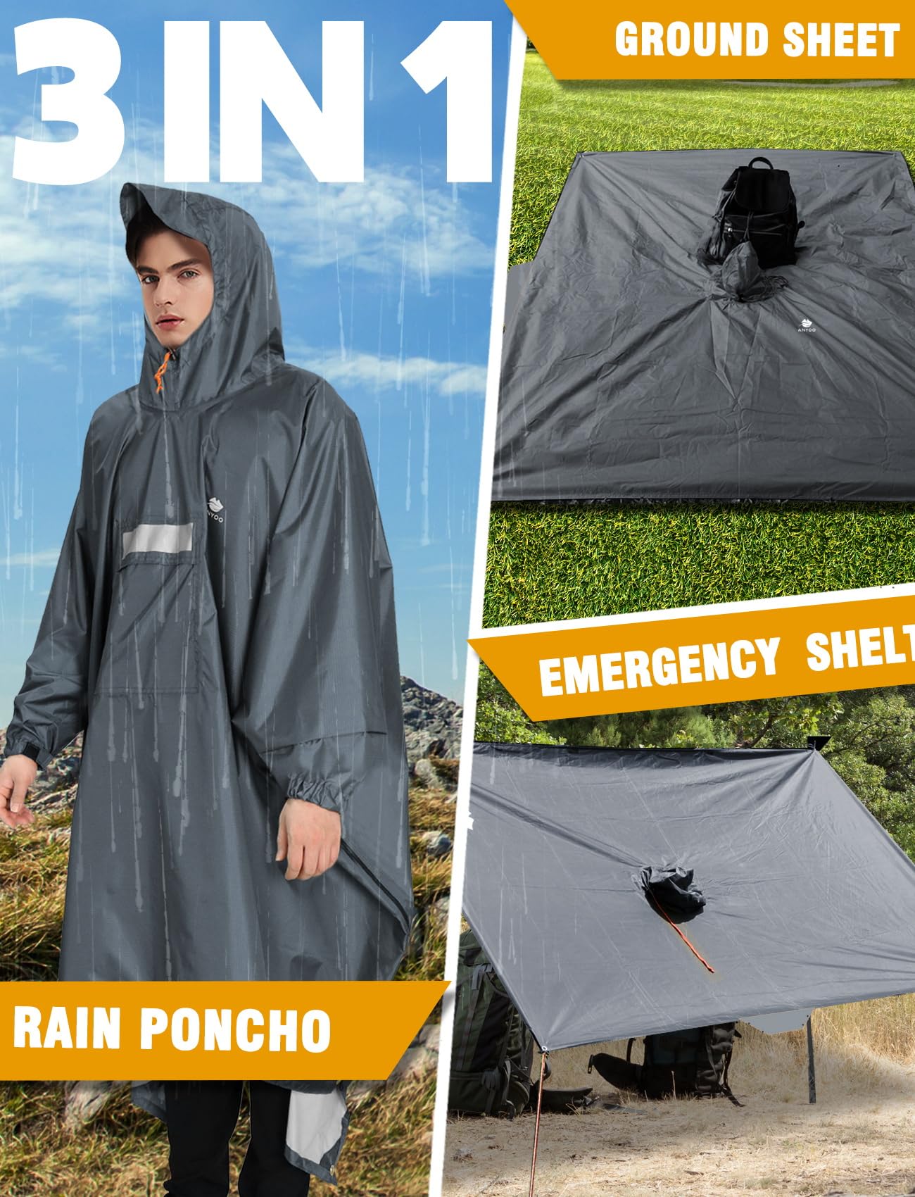 Multipurpose: The three in one multi-functional poncho can be used as floor mat, cape,a simple shelter and canopy. The poncho has eyelets on the hem for building a poncho shelter or a ground sheet, and hook & loop fasteners on the sides allowing you to use it as a sleeping bag cover.It can also provide a barrier against wind or serve as a makeshift shelter if needed. Good for the traveler, outdoor enthusiast, or for any outdoor activity with rain on the horizon.