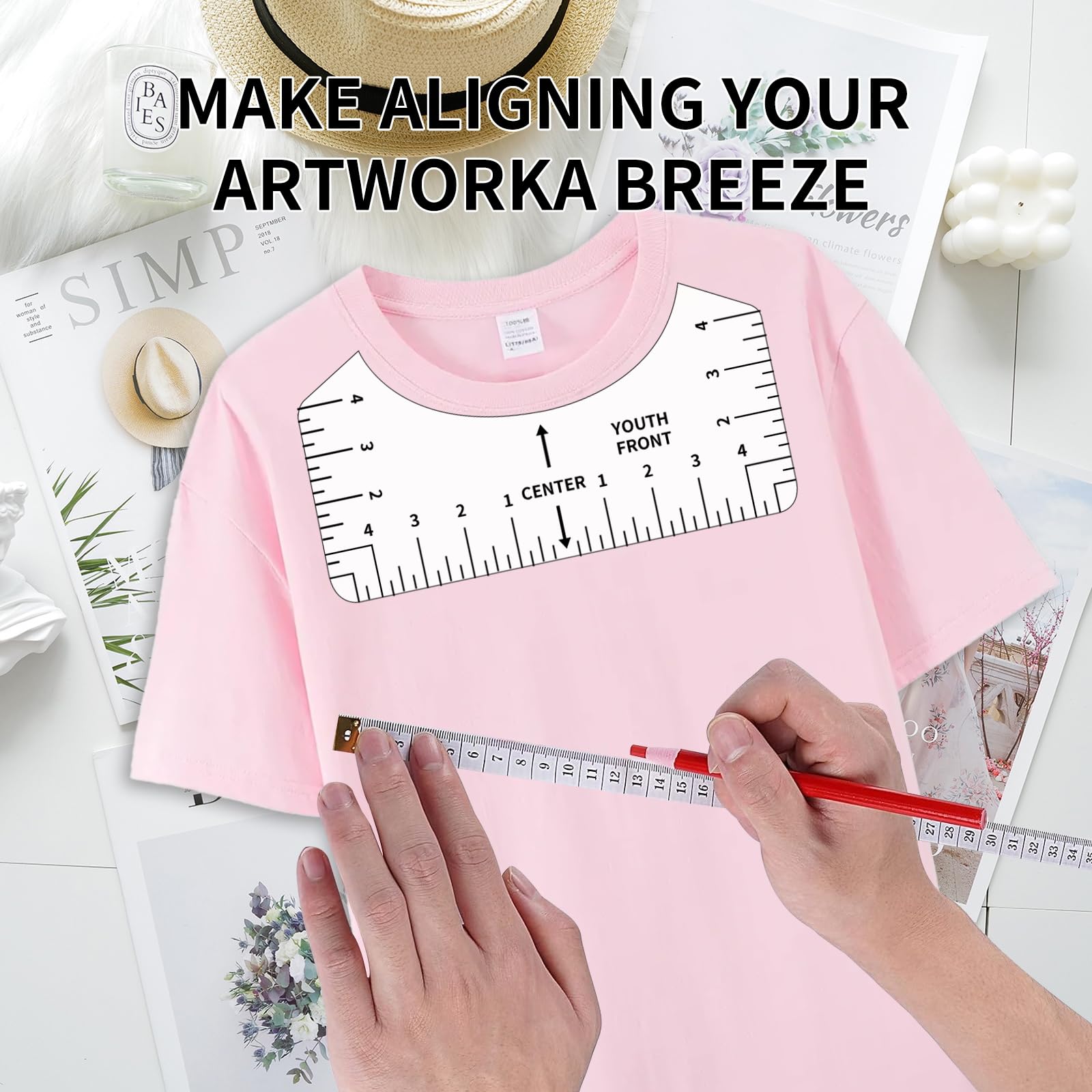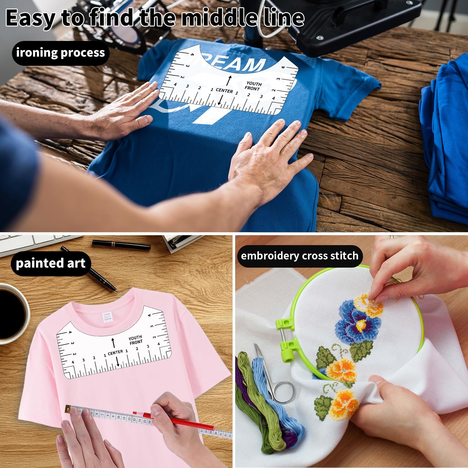 📏【T-Shirt Alignment Tool Set 】T shirt ruler guide include 8pcs different sizes rulers, the size are: Adult: 10"x 4" / Youth: 10"x 3.5" / V-neck: 10"x 4" / Children:10"x 2.5". Both includ front and back rulers. Help you to make alignments and save time on center your designs.