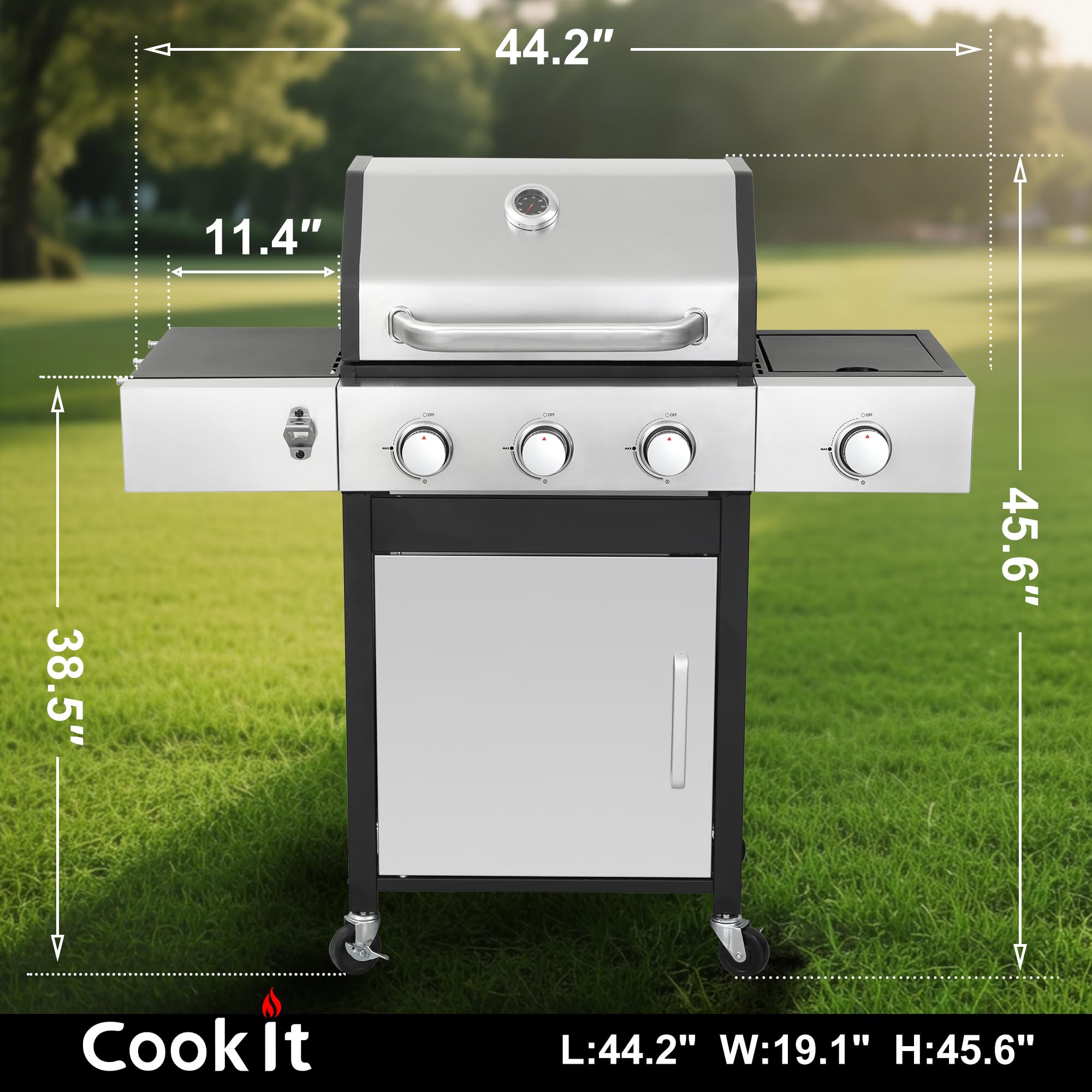 Smart Burner System for Versatile Cooking - 30,000 BTU of three main burners with instant electronic ignition give you precise temperature control, while the 9,000 BTU side burner acts as your outdoor kitchen helper - perfect for simmering baked beans or melting butter for corn on the cob.