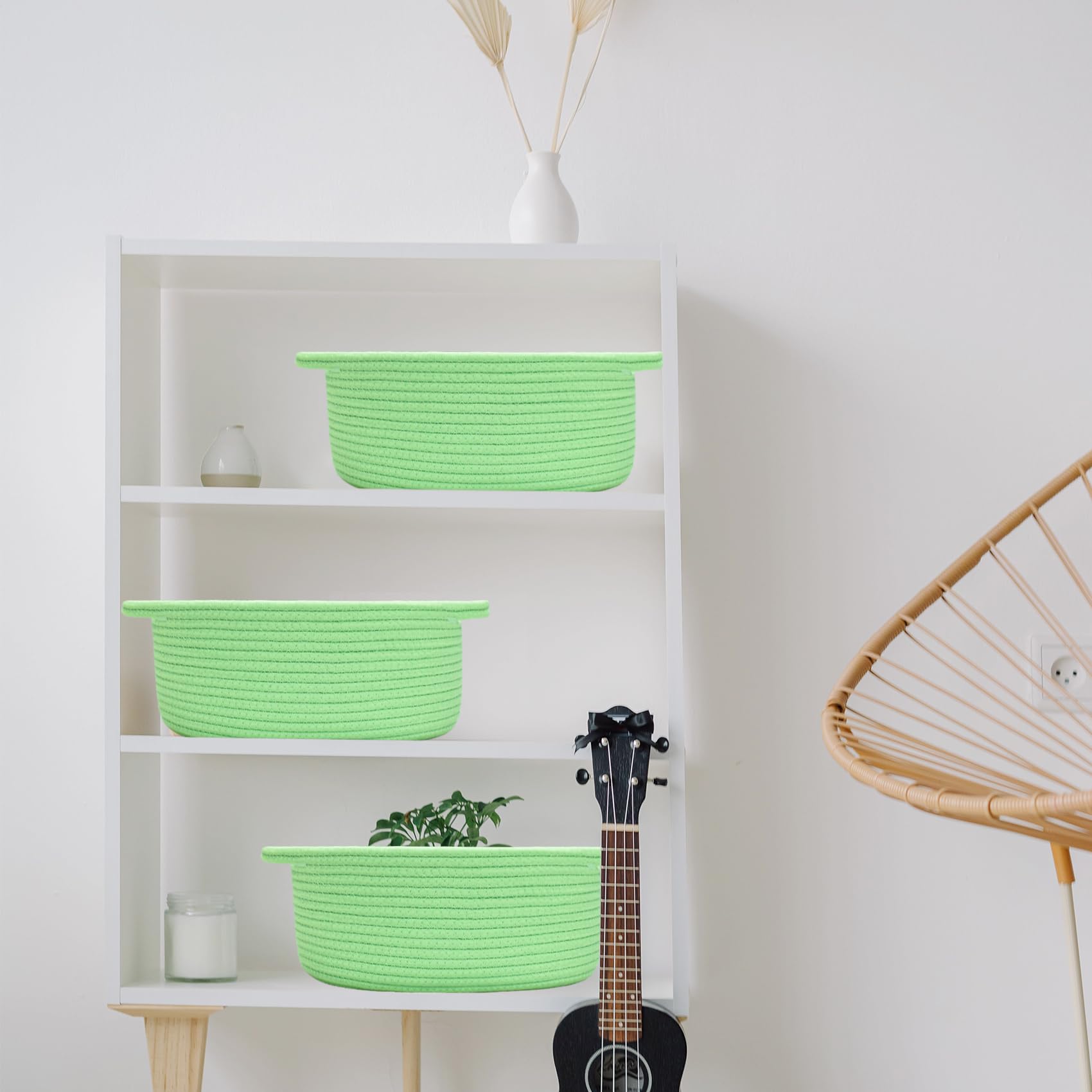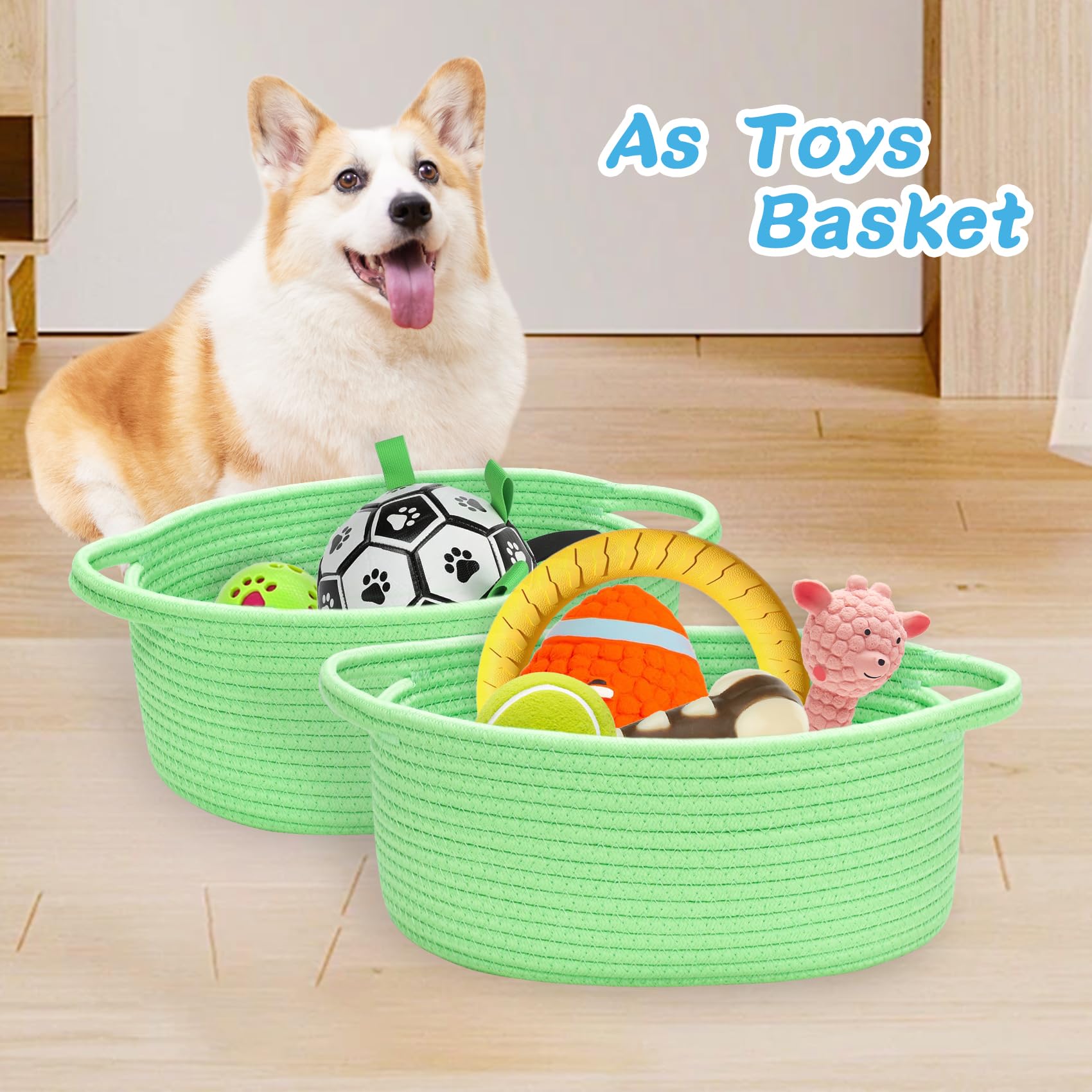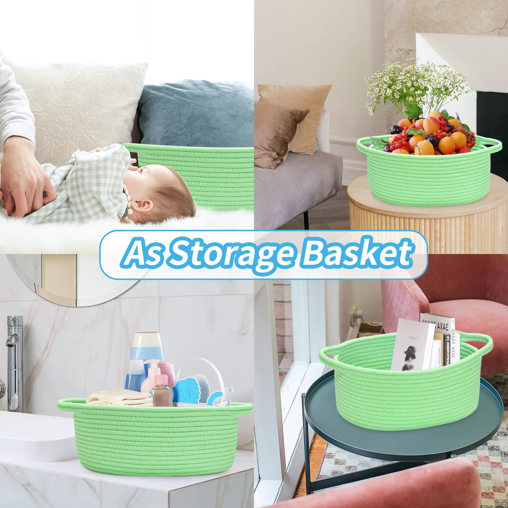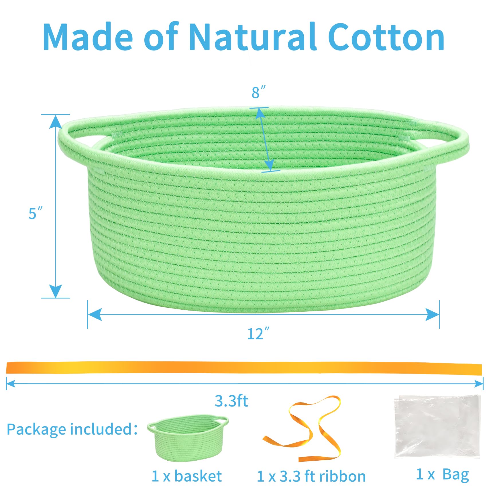 Made of durable cotton rope, natural, chemical-free, skin-friendly, woven basket safe for baby and pets, scratch-free to floors or walls