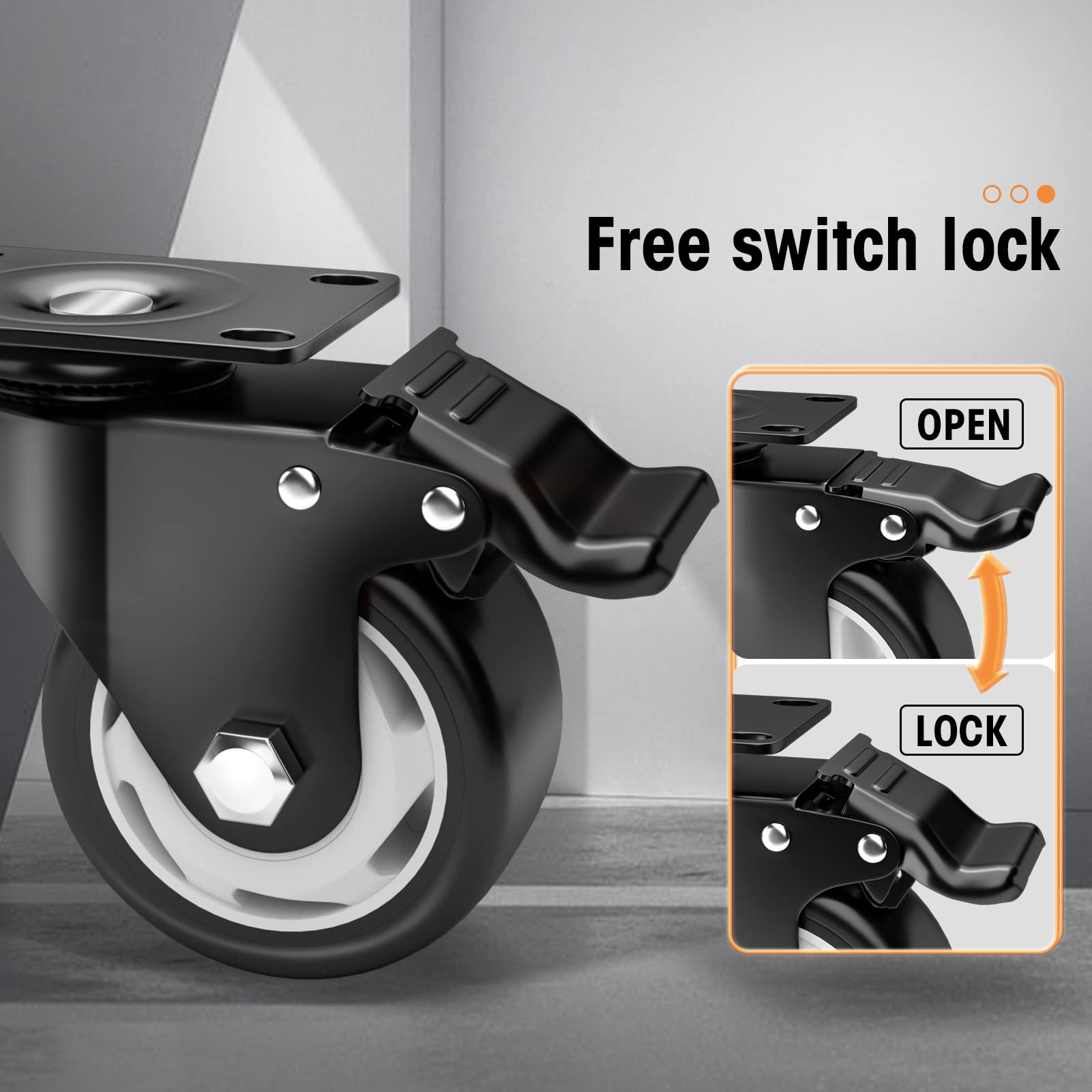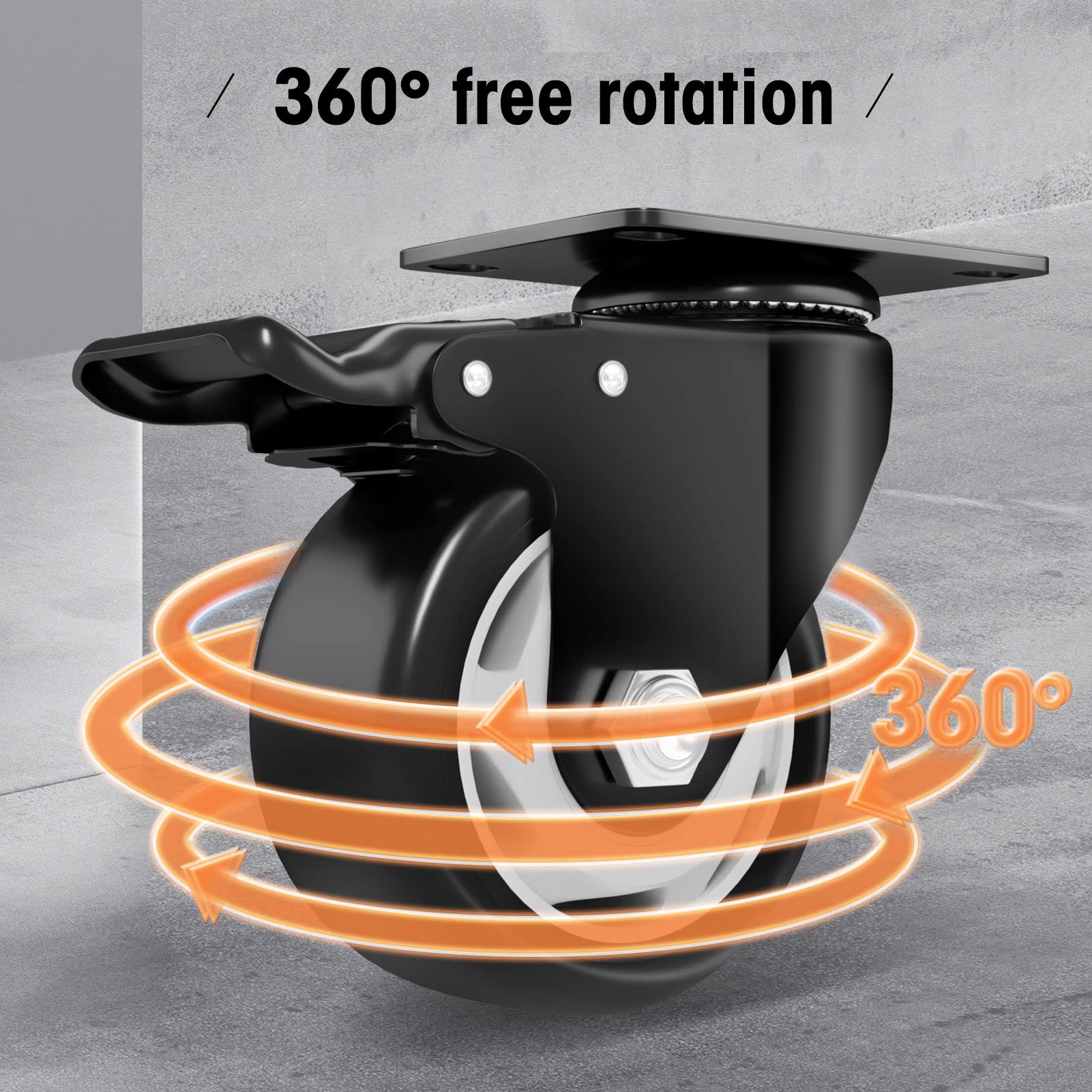 Heavy Duty Casters: The load capacity is strong, each 3 inch caster can carry 375 pounds, 4 castors can carry 1125 pounds to 1500 pounds, using double bearings, polyurethane, silent, no trace, protect the ground