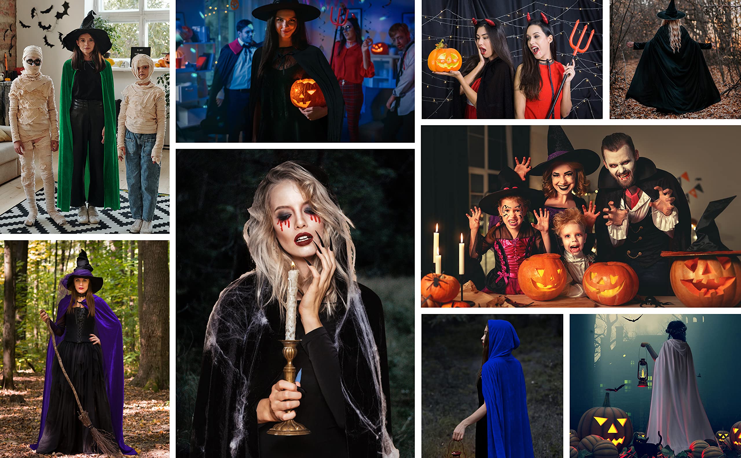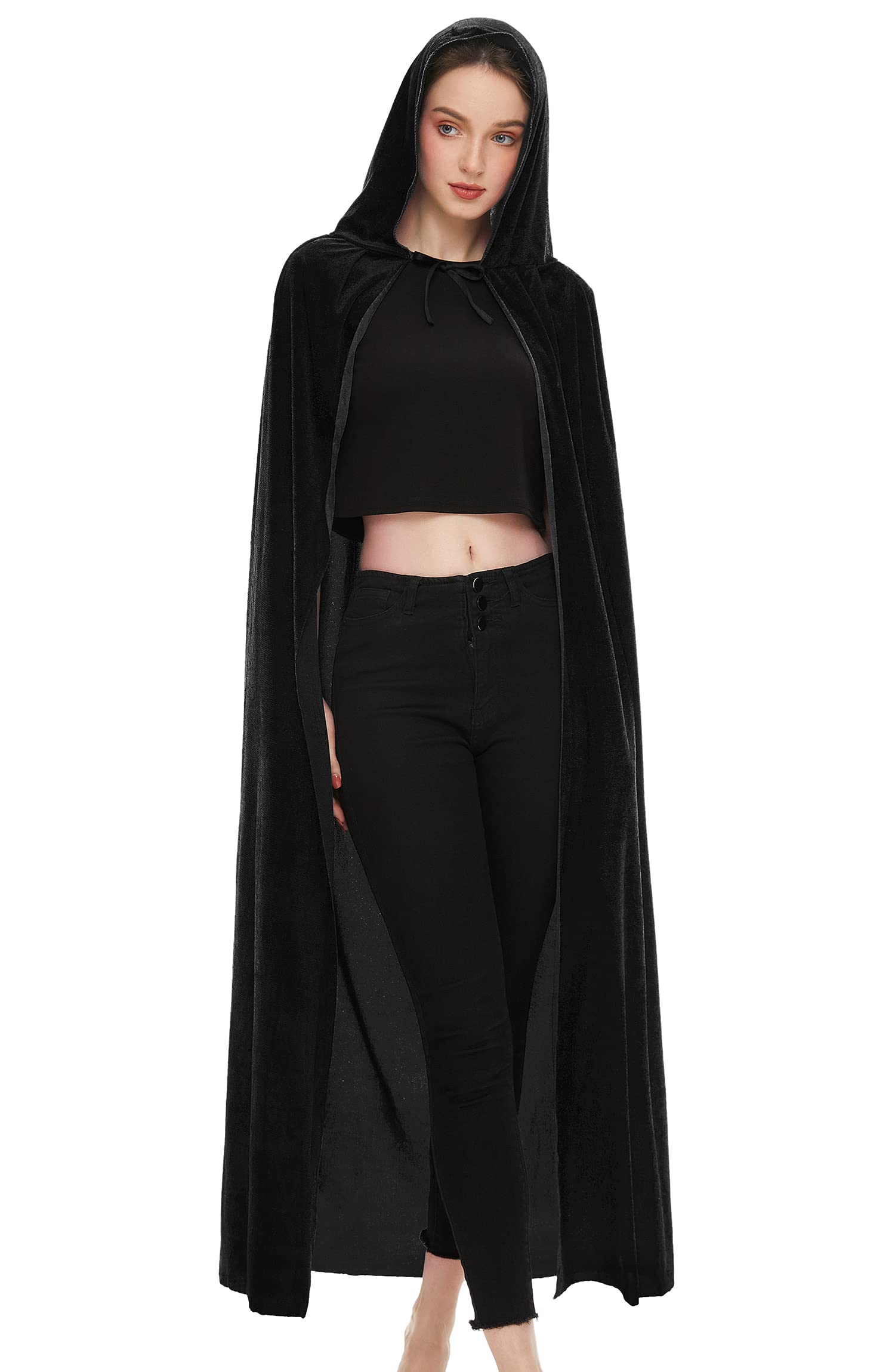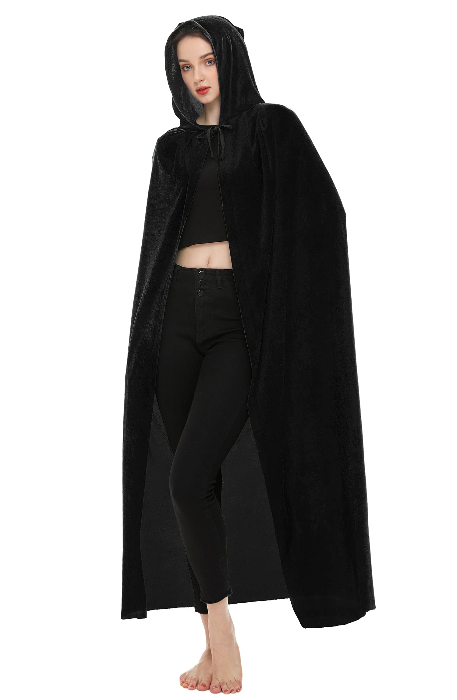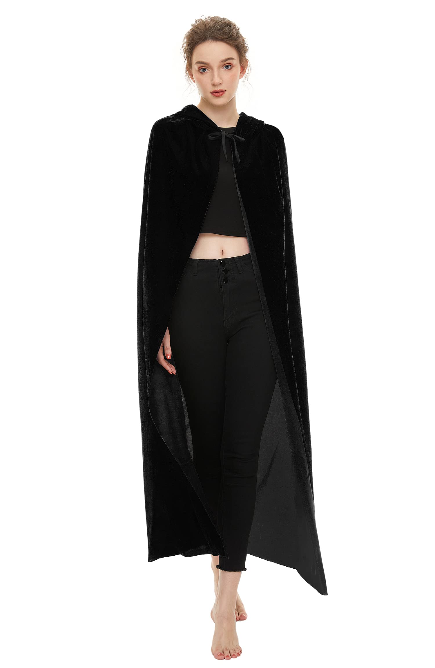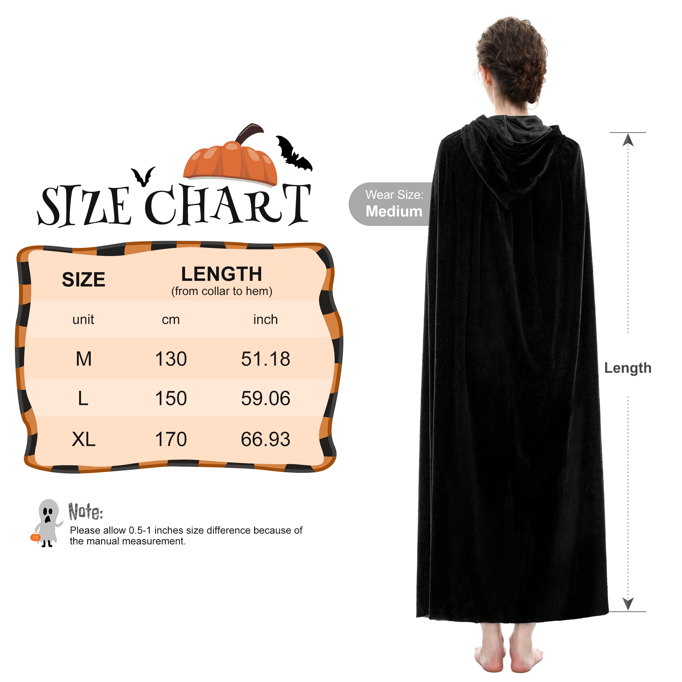 Full Length Witch Cape: The length from collar to hem is M(51.2"/130cm), L(59.1"/150cm), XL(66.9"/170cm). Full length wizard robe cloak / cape for adults generally used for both female and male, fits most dress-up occasions.