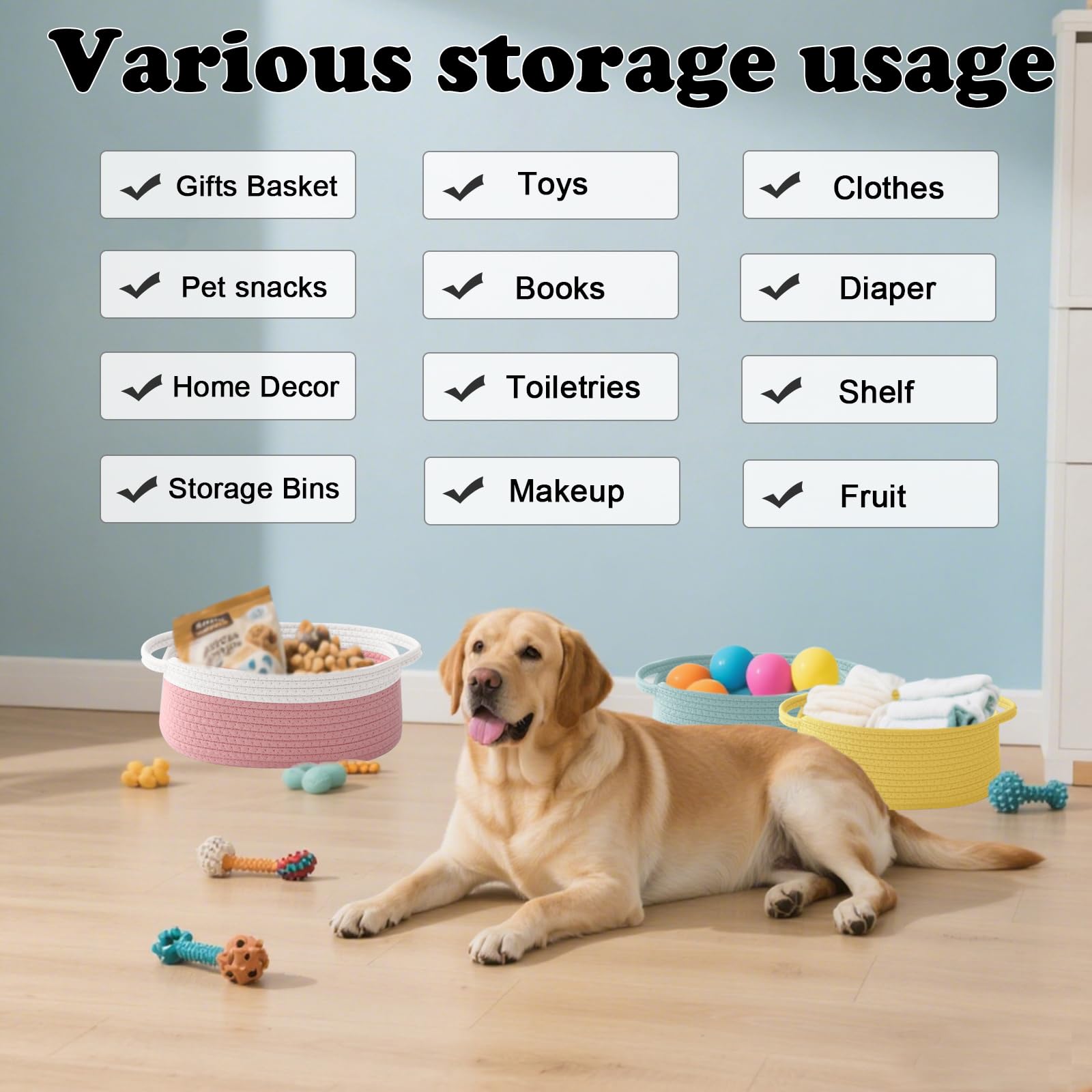 【Multi-Purpose Storage】Woven baskets for storage,bathroom organization, shelf styling,storage basket for organizing snacks, dog cat, magazine, shoes, remotes, books, towels, toiletries, keys and more.Widely used in living room,bedrooms,bathrooms,kids room,and Kitchen