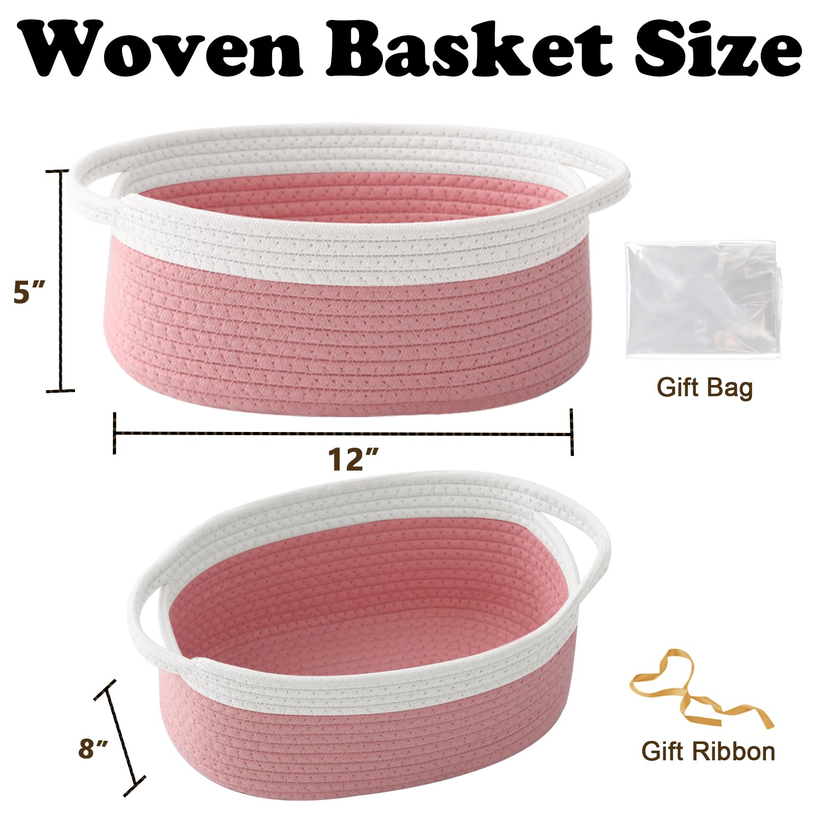 【Small Gift Basket】Handcrafted for Strength, Stability and Beauty.Storage basket measures 12" L x 8" W x 5" H, Use it to organize small items, The basket itself is also a great gift
