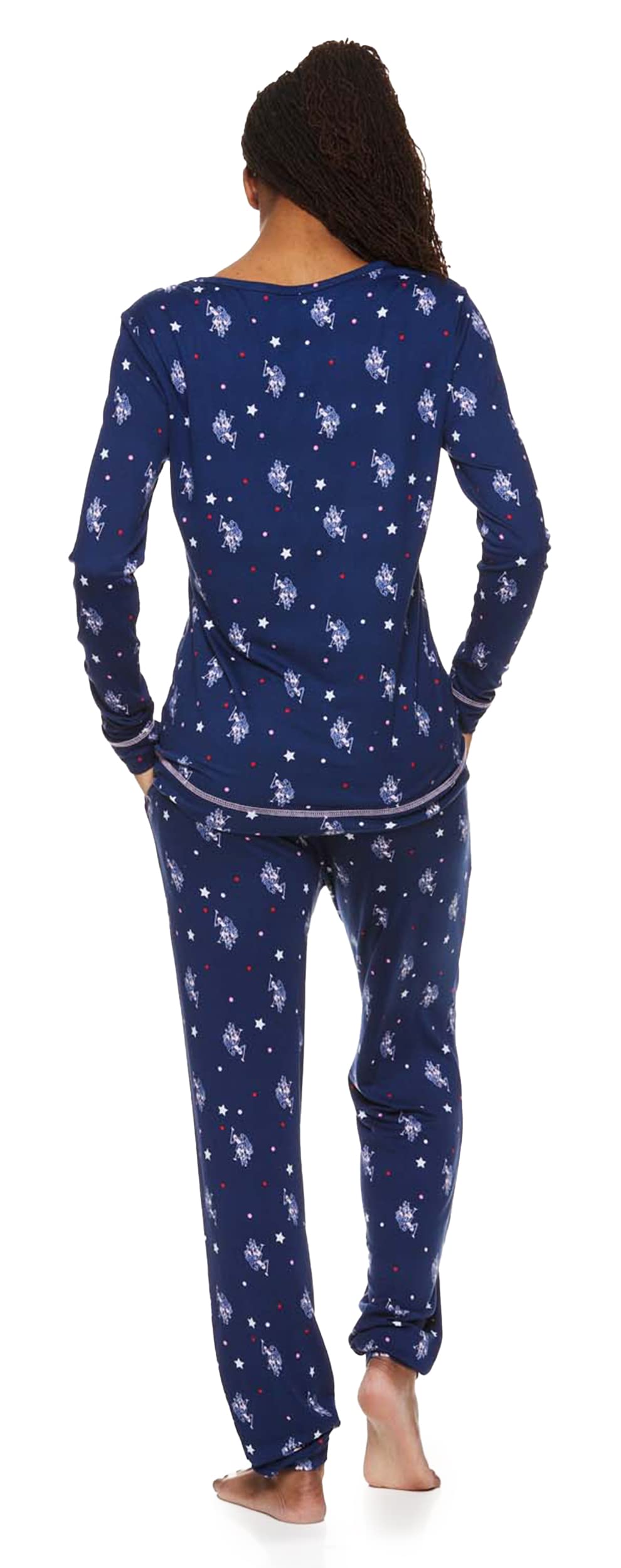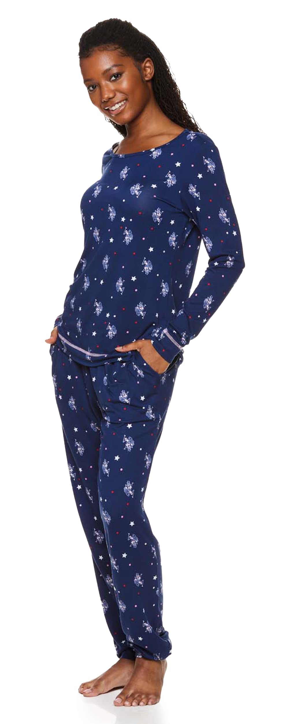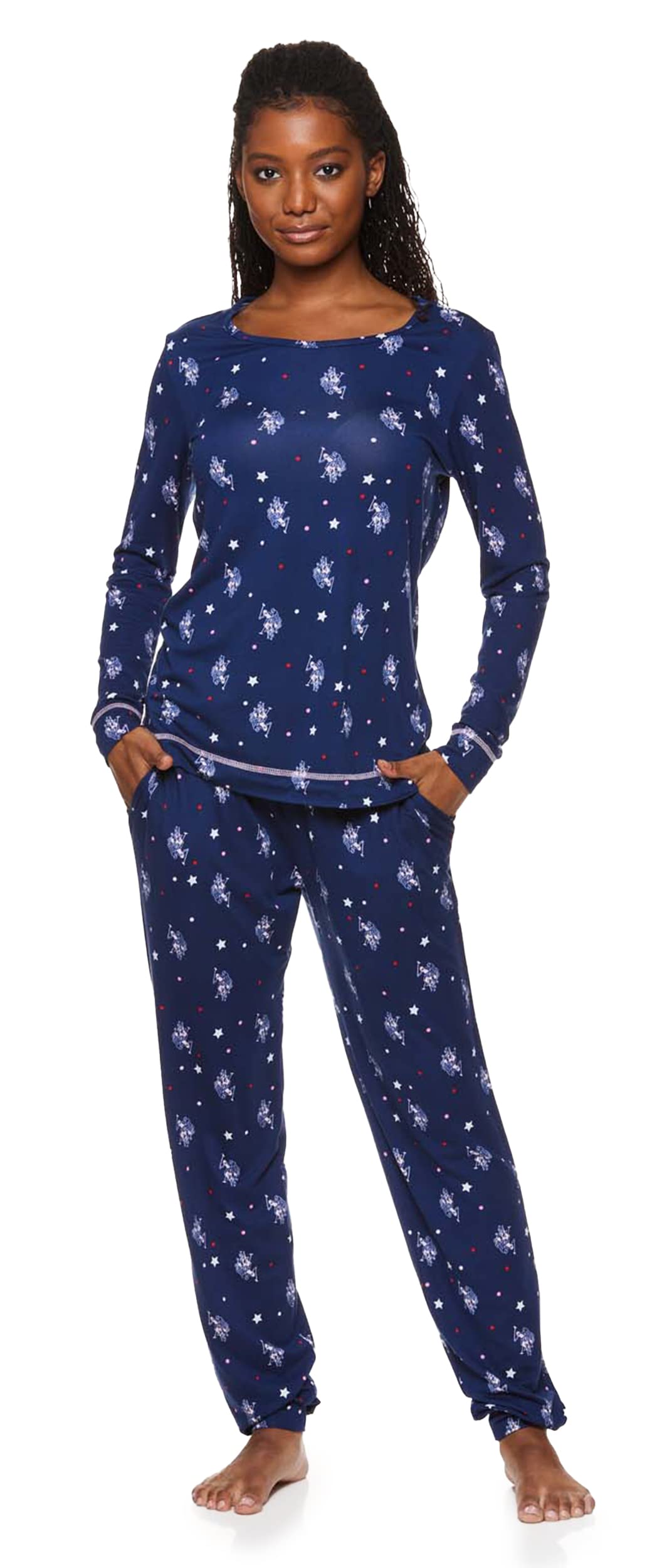 Description The U.S. Polo Assn. Ladies Pajamas Set is a stylish and comfortable choice for lounging, resting, or sleeping, making it a perfect womens sleepwear gift for yourself or someone special. This 2-piece pajama set for women includes a cozy, long-sleeve pullover top featuring the iconic U.S. Polo Assn. logo, along with full-length pajama pants that come with or without pockets. Designed for ultimate comfort, the pajama pants feature an elastic waistband and a relaxed leg fit. Made from machine-washable fabric, these pajamas are easy to care for, and their comfort and style make them an ideal gift for the holiday season, whether for mom or any woman on your list.