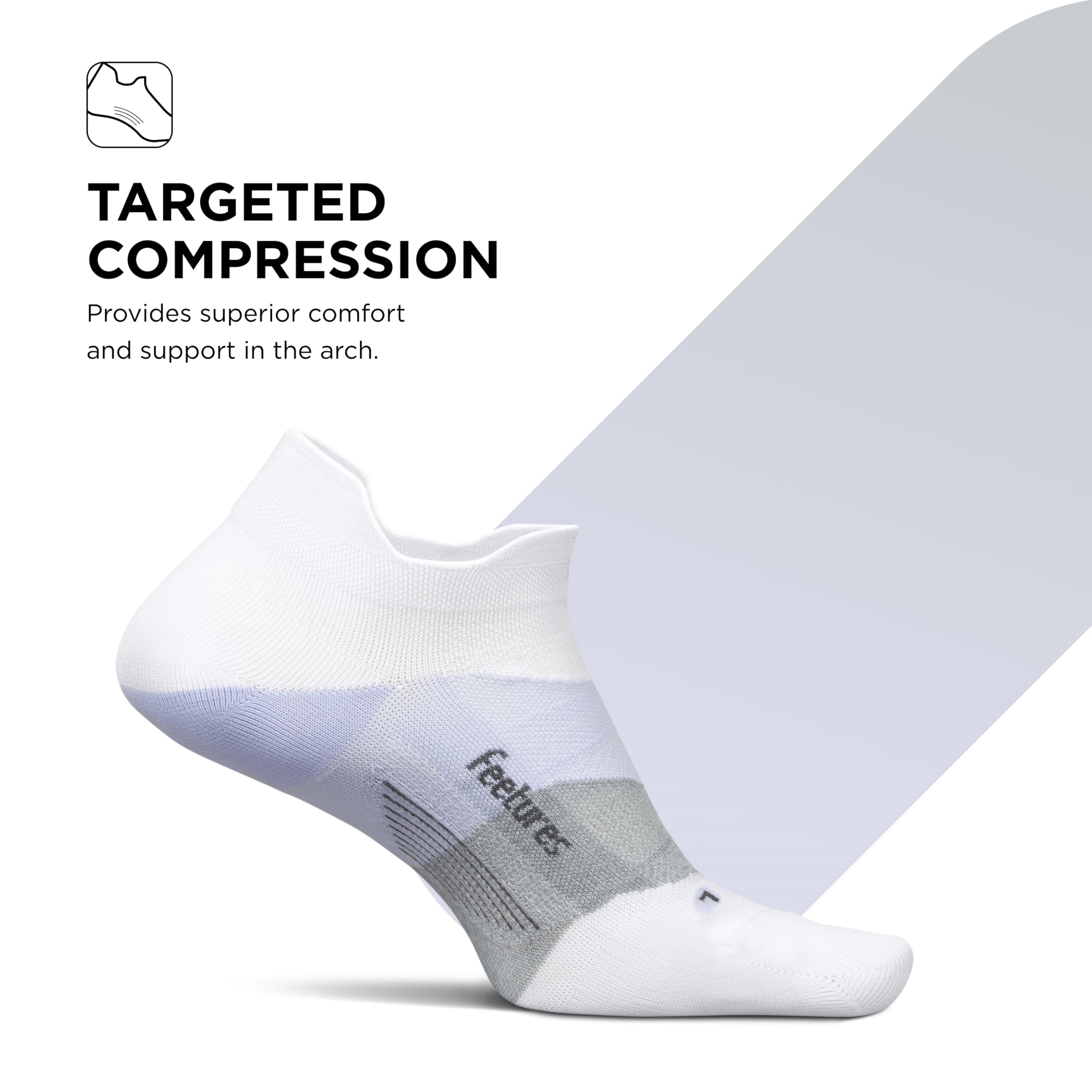 Sports Sock: These Feetures socks are engineered with Targeted Compression and anatomical design that conform to the left and right structure of the foot providing a custom-like fit and reduced risk of blisters