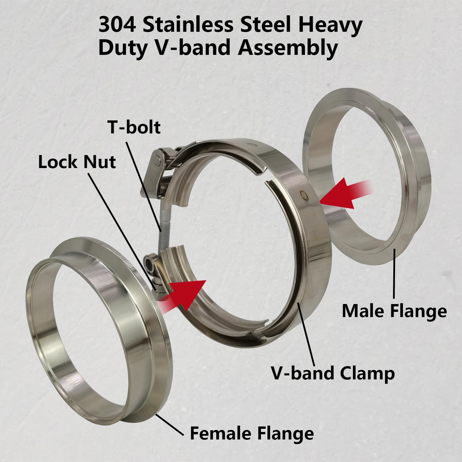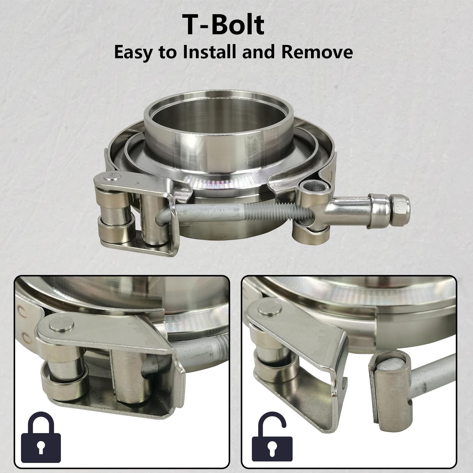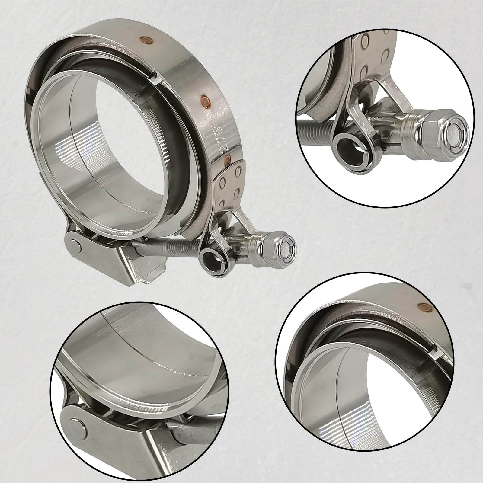 QUICK RELEASE DESIGN: this design of this 2.75 inch v band clamp is ideal for applications that require frequent removal. It can be connected and disconnected faster while providing a leak-free seal with even pressure at the flange.