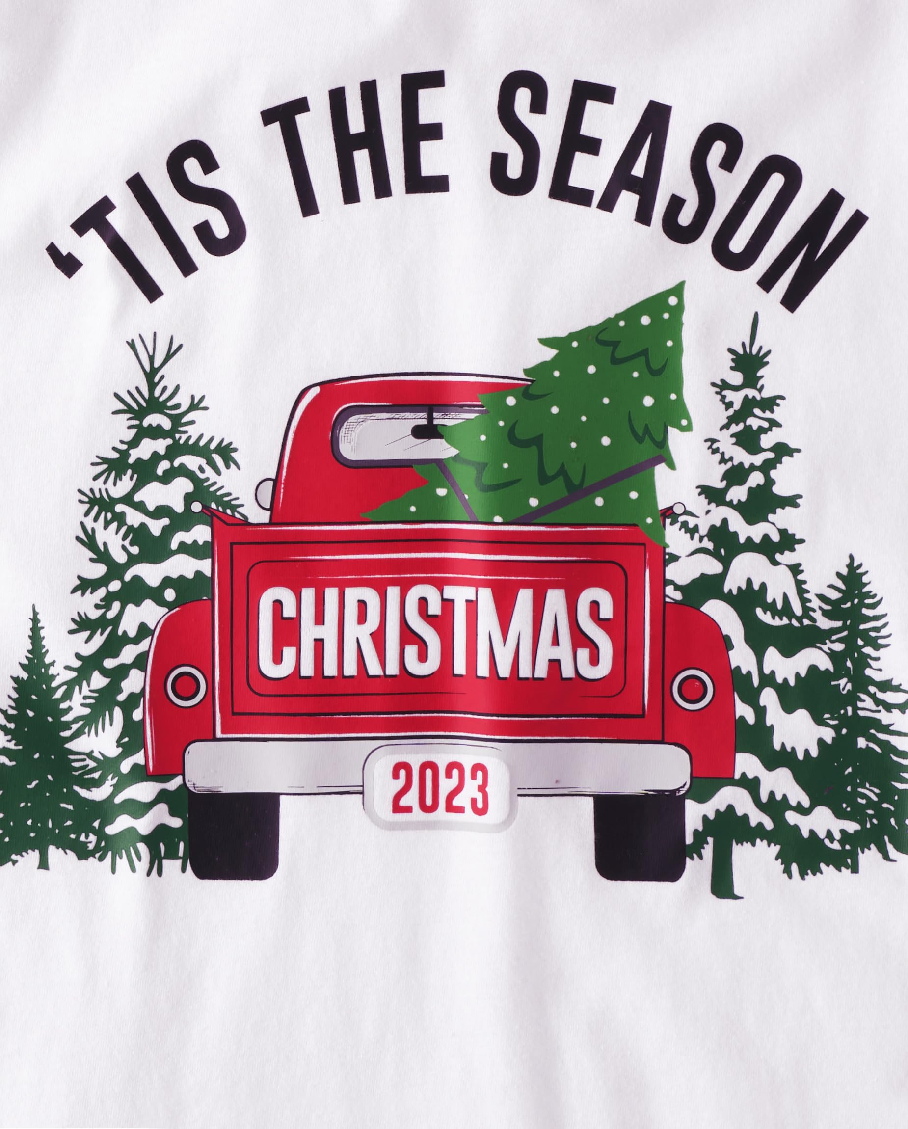 PAJAMA TOP — Features long raglan sleeves, rib-knit crew neck and sleeve cuffs and ''Tis The Season Christmas 2023' with truck graphic design at front
