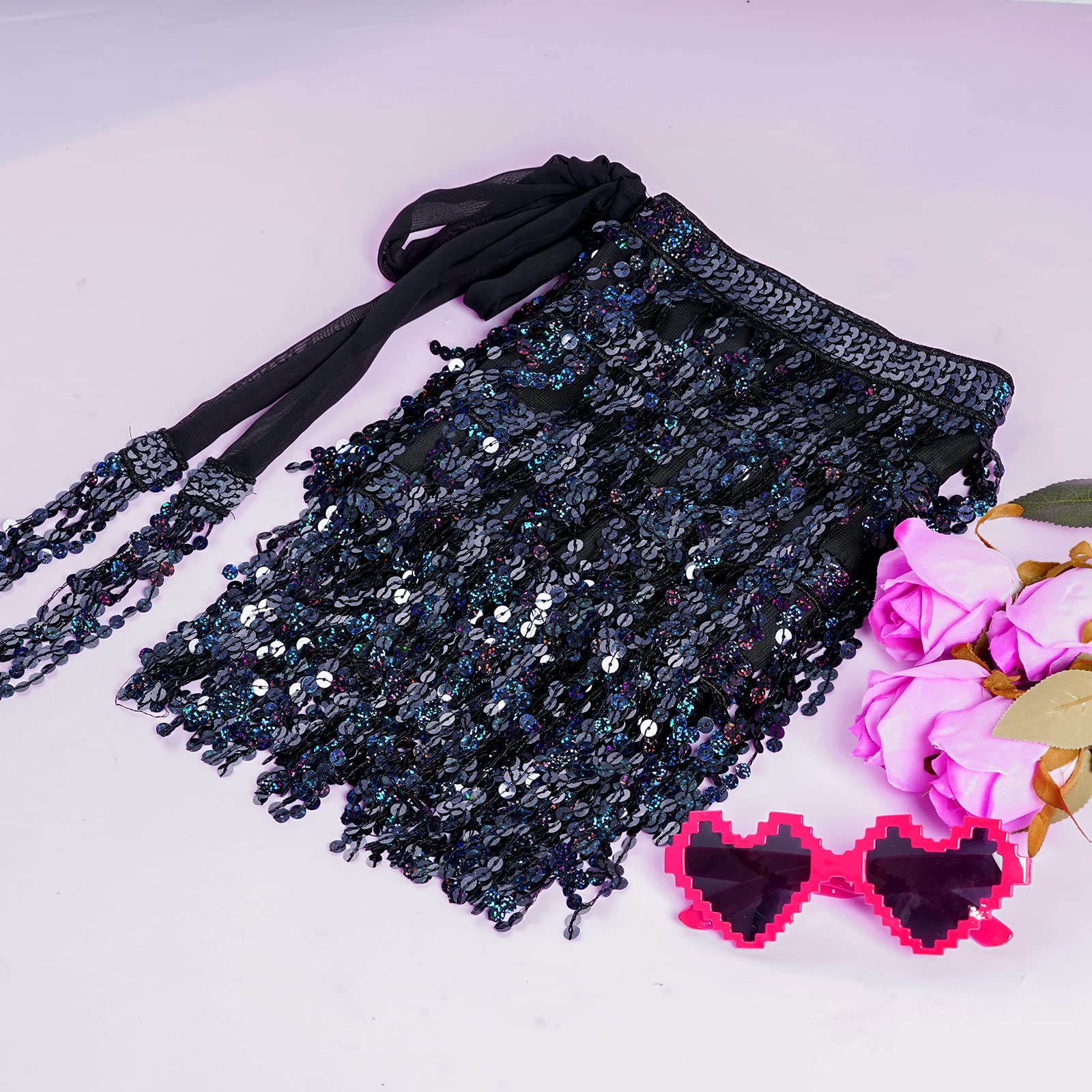Exquisite Design: This fringe hip scarf has various strands of sequins, reflect any light that shines on its surface, unique and gorgeous, make you be the center of the crowd