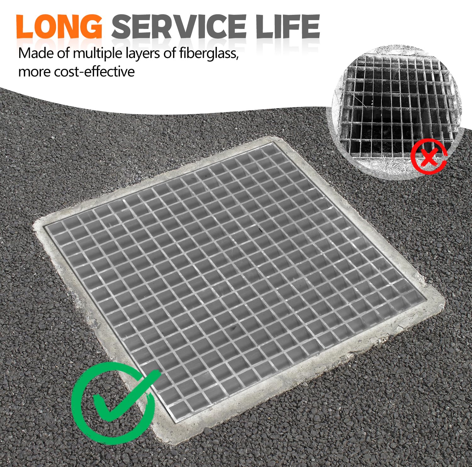 Superior Durability and Corrosion Resistance: Upgrade your industrial spaces with LYASIL fiberglass molded grating, offering unmatched durability, excellent corrosion resistance, and a long service life with minimal maintenance requirements. Ideal for outdoor flooring, marine docks, car wash drains, and other harsh environments.