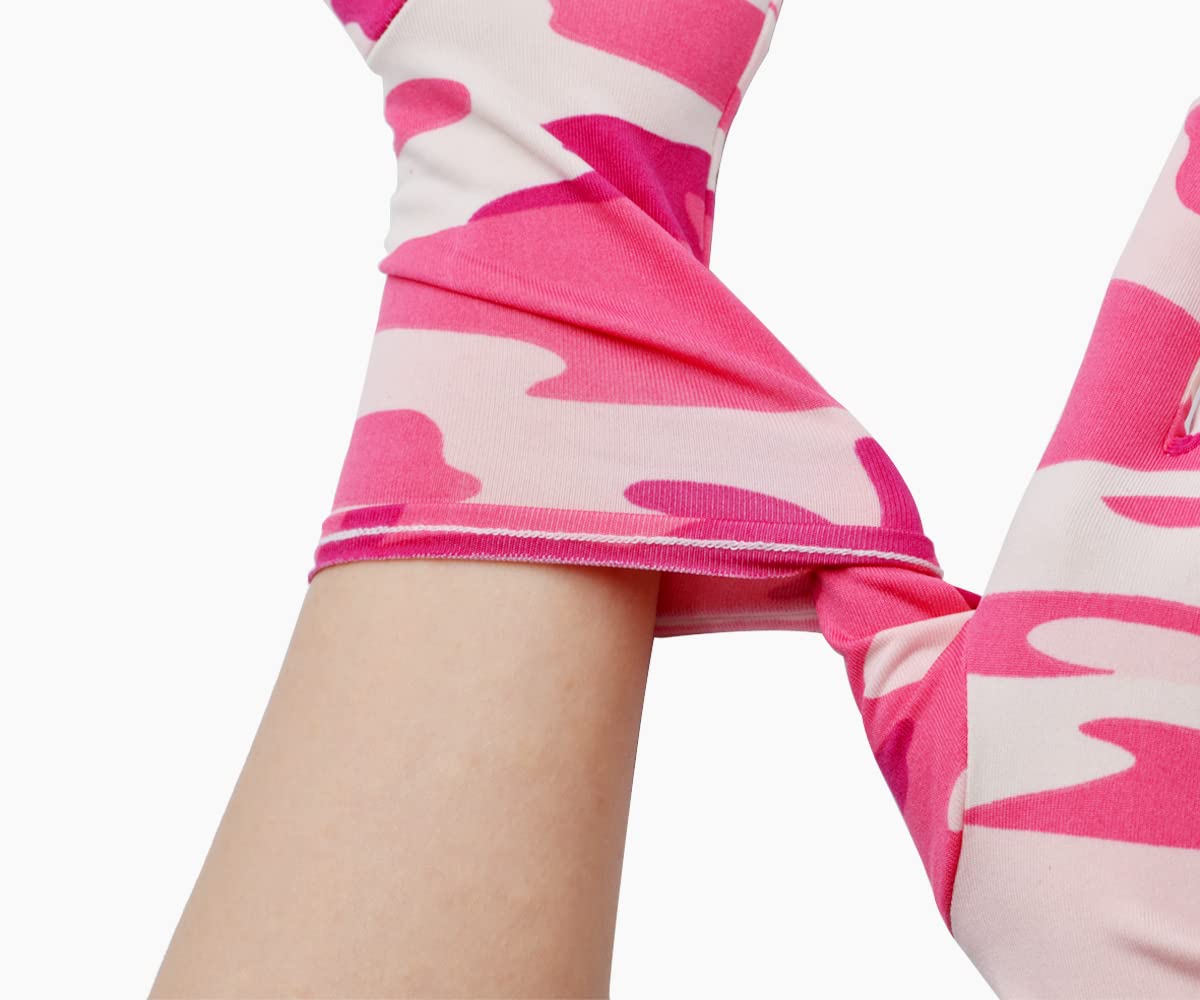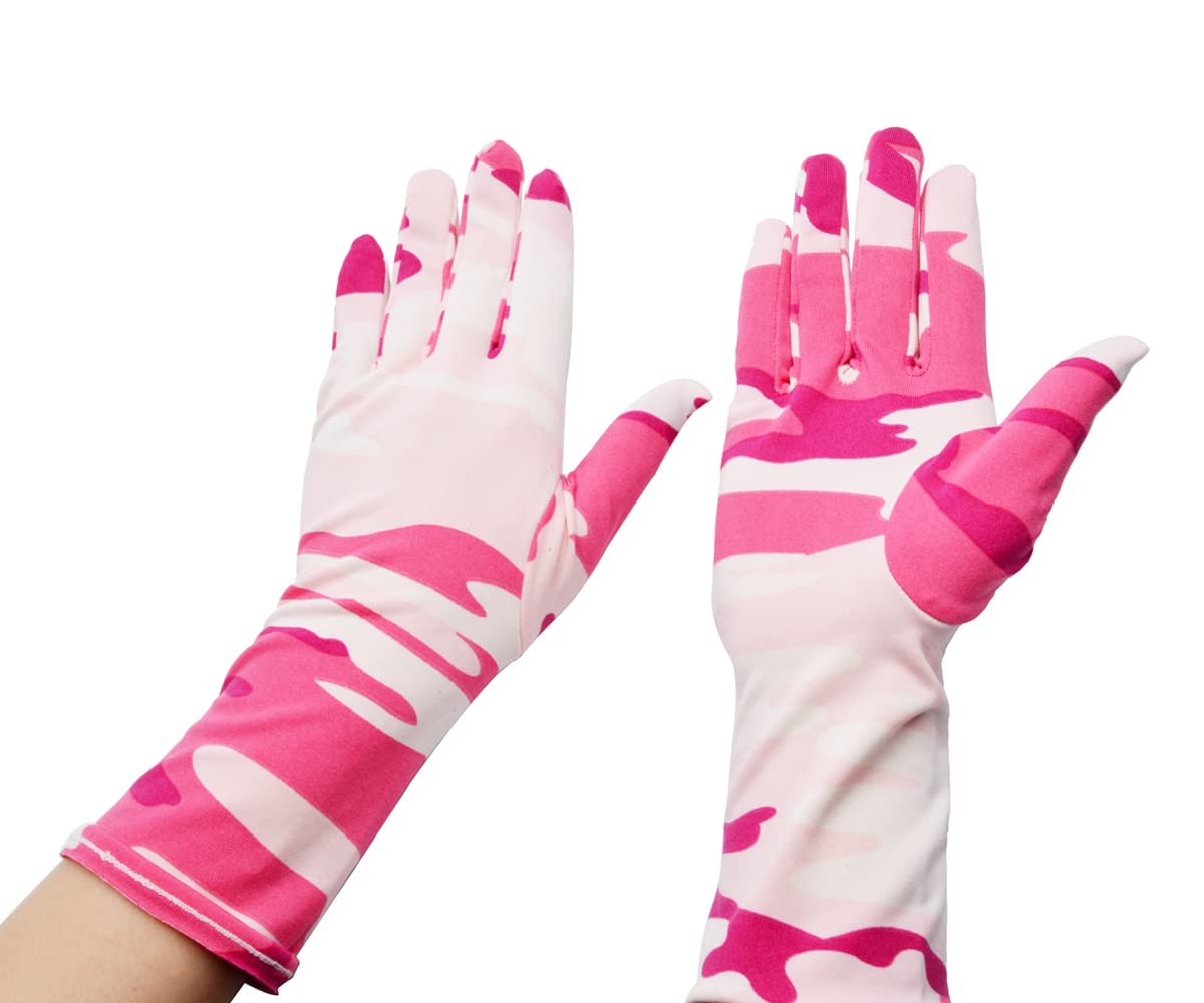One size fits most with strong elasticity. The length from middle finger to wrist is approx. 9 inches