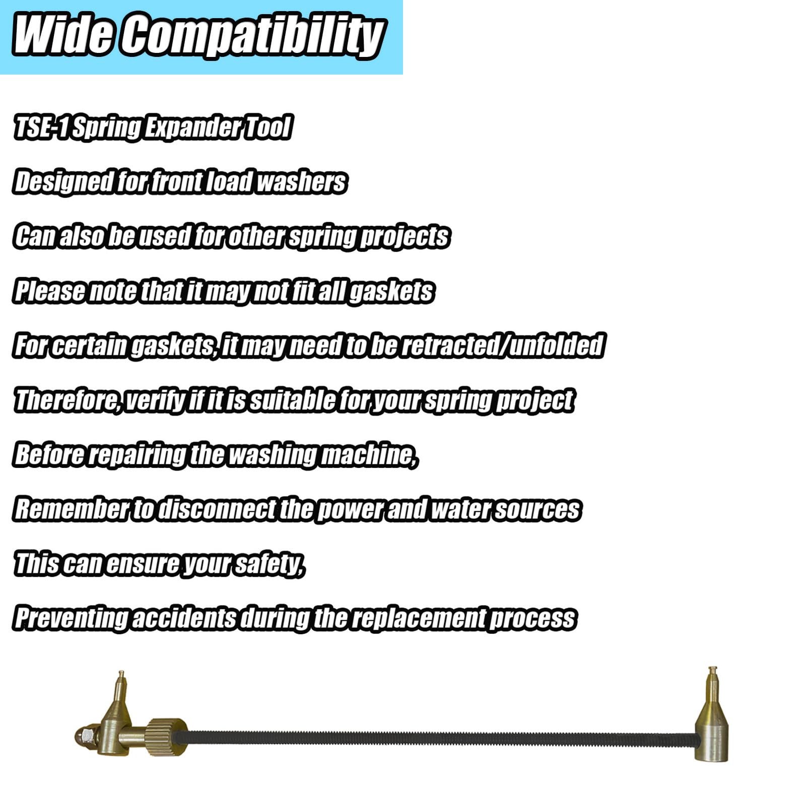 Wide Compatibility: While specifically designed for front load washers, this tool can also be used for other items that require springs to be expanded. Please note that it may not fit all gaskets or retract/expand as far as needed for some washers, so it's important to verify fitment with your specific application.