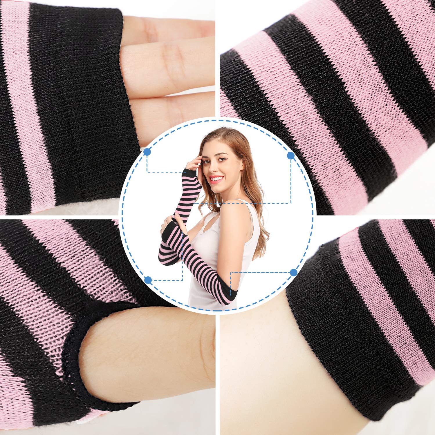 Fingerless and Thumb hole design - The long fingerless gloves have a hole in the thumb, which is not only warm, but also very convenient and practical. Fingerless design made you easy and flexible to access to your computer and mobile phone. The thumb holes are aligned with no frayed edges, they are stitching well, won't easily lose the shapes.