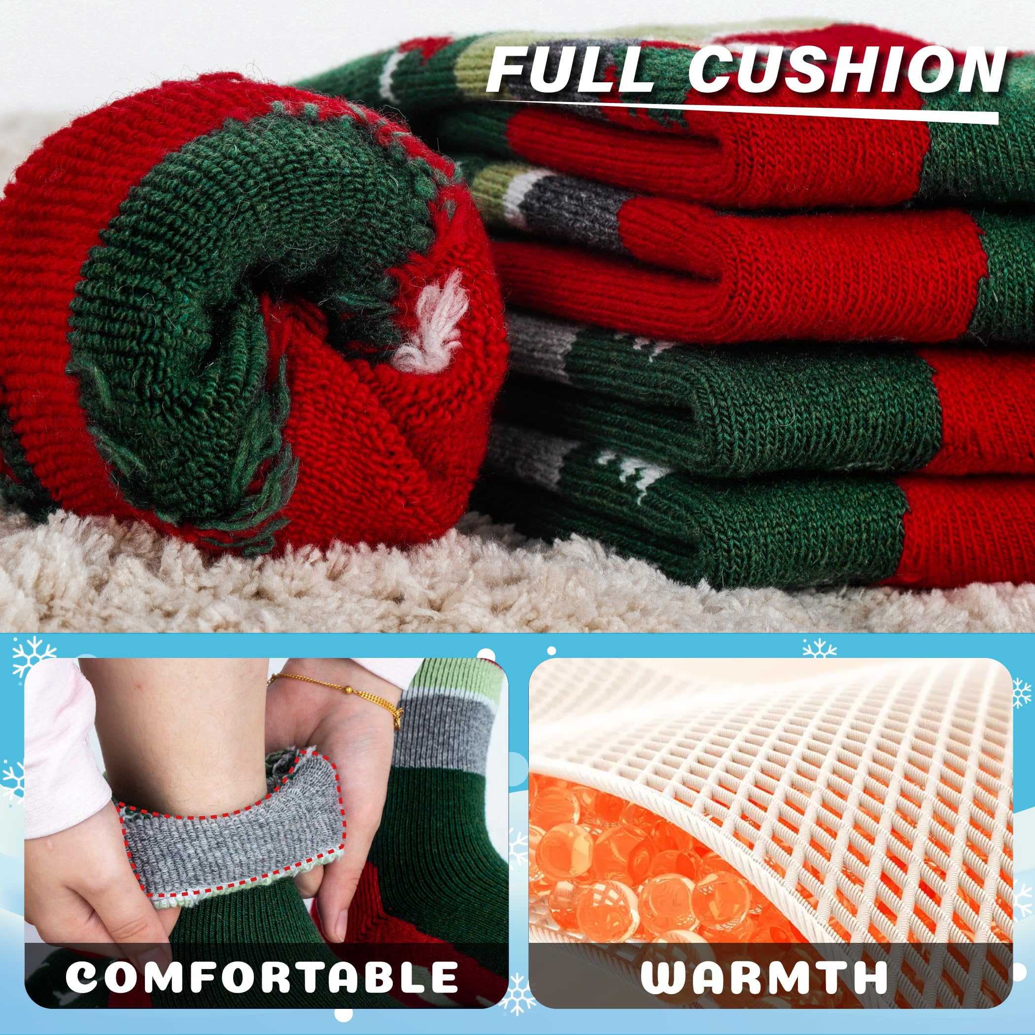 Full cushion padded socks: full cushioning throughout the entire snowboard sock provides soft and warmth. The thickness provides full support to absorb shock effectively and reduce the risk of blisters and foot pain in daily wear or winter sports