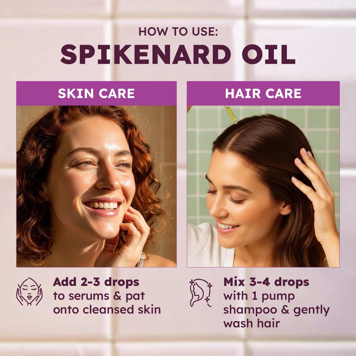 For those seeking clear-looking, hydrated skin, incorporate spikenard oil into your daily skincare routines. It deeply hydrates and promotes an even-looking skin tone while feeling gentle and naturally nourishing.