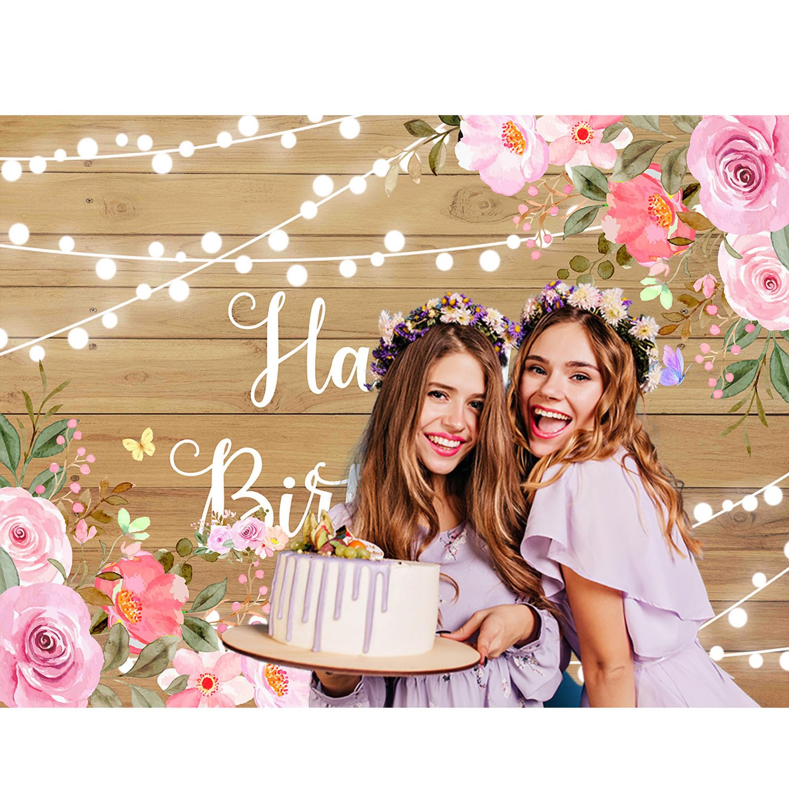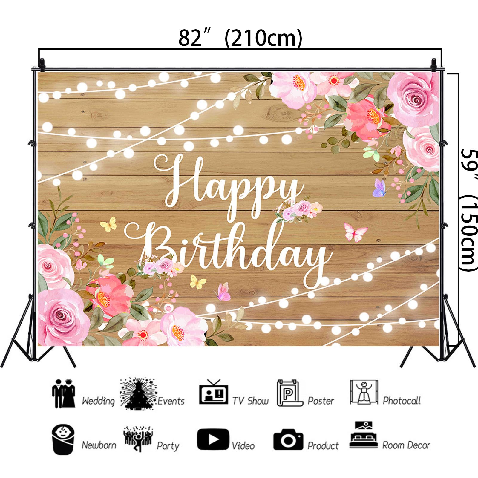 Birthday Backdrop For Women: The package contains 1 piece of birthday backdrop and a white rope for hanging.Send by folded.Stand bracket or clamp not included
