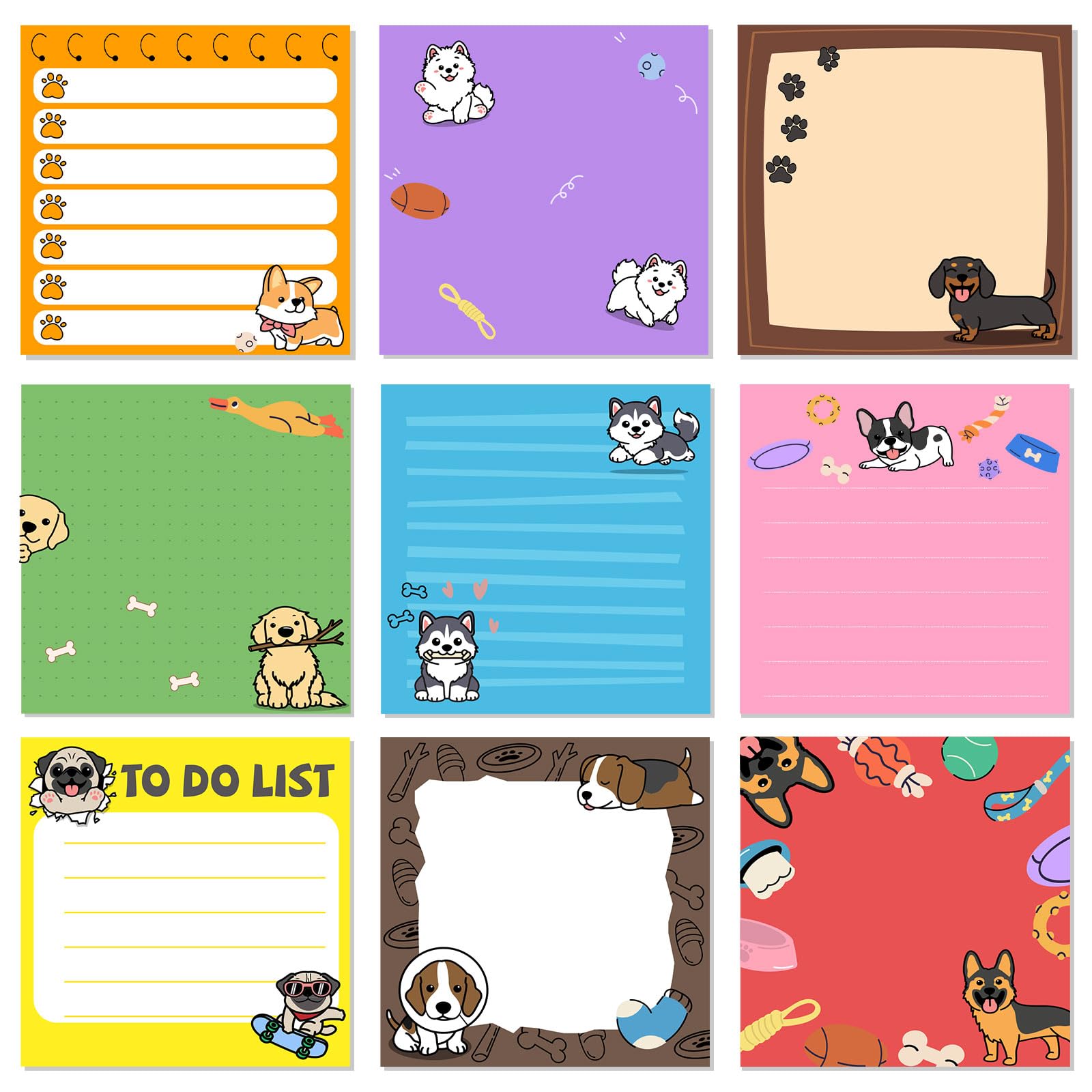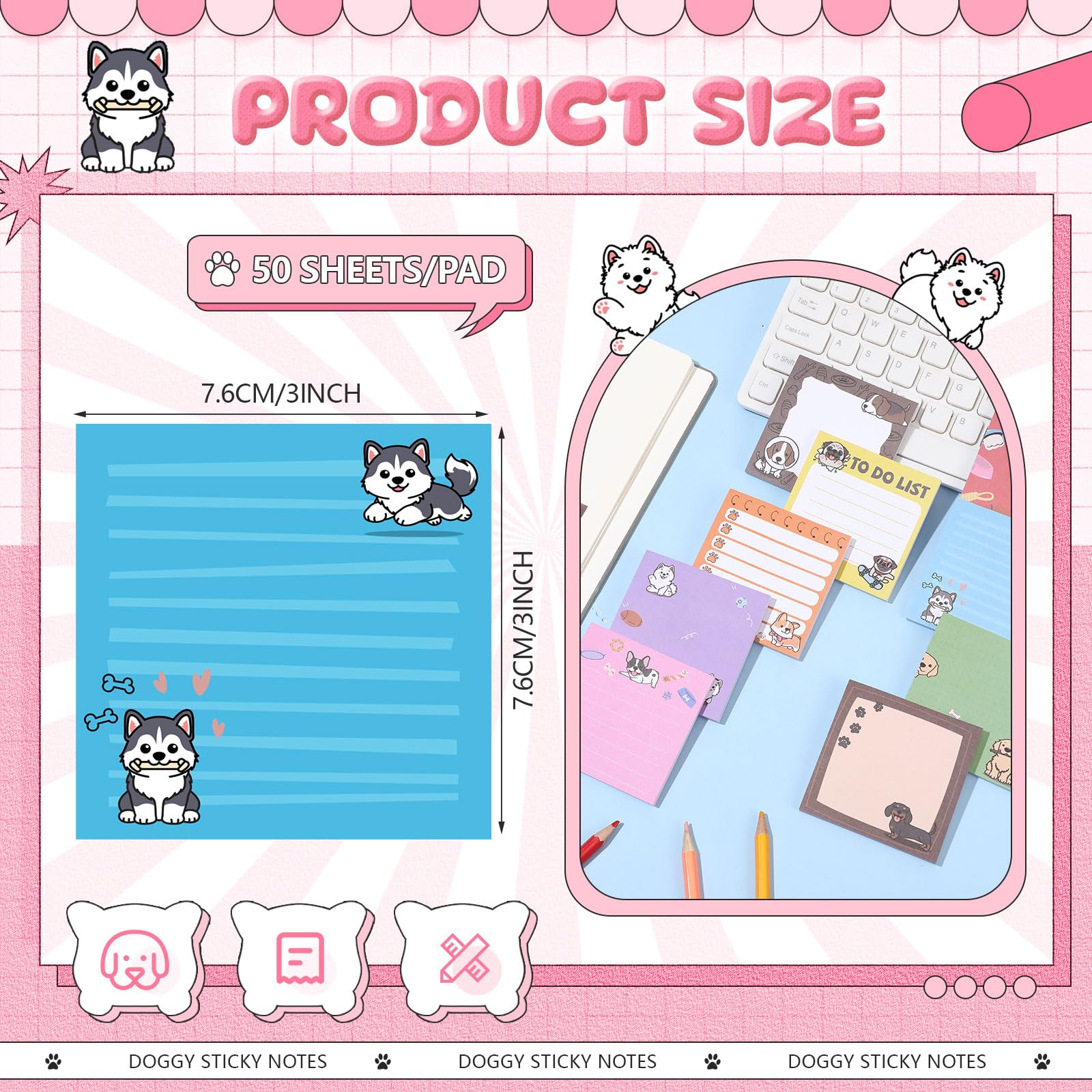 Package Contains: the set of cute dog sticky note pads includes 9 pads, with 50 sheets each, providing a total of 450 useful and attractive notes; Each note measures about 3 x 3 inches/ 7.6 x 7.6 cm, poised to assist in organizing and efficiency tasks