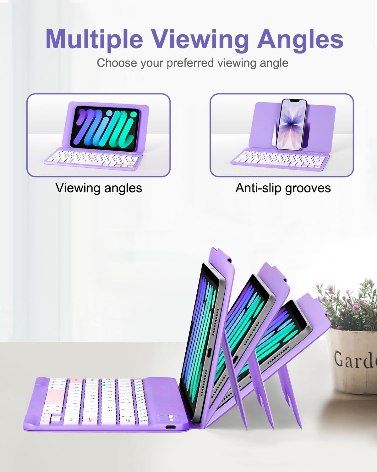 【Adjustable Stand and Magnetic Cover】The built-in adjustable stand allows you to find the ideal angle at any angle. The sturdy stand supports your device so you can type, work, and read. The magnetic cover folds away when not in use, creating a stylish and protective keyboard.