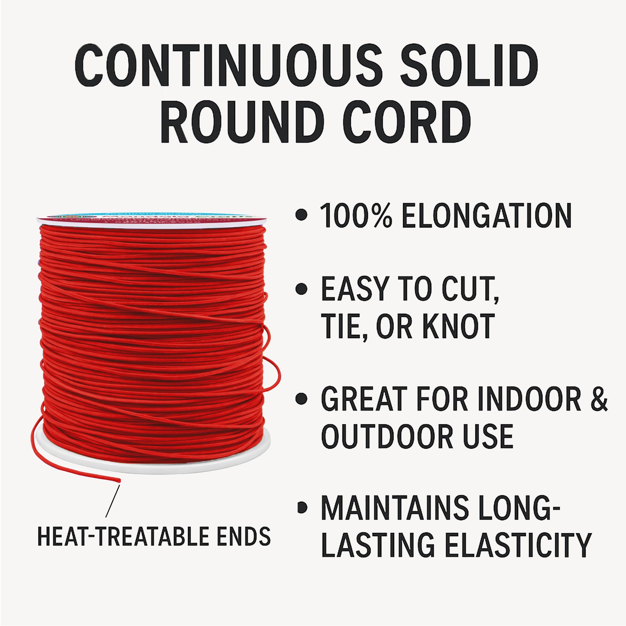 Bulk Stretchy Fabric Elastic Cord 1mm Stretch Strings Spool: The continuous 109-yard solid round cord elastic with heat treatable ends offers 100% elongation. Easy to cut, tie, or knot, the colored elastics cord for indoor & outdoor maintains long-lasting elasticity.