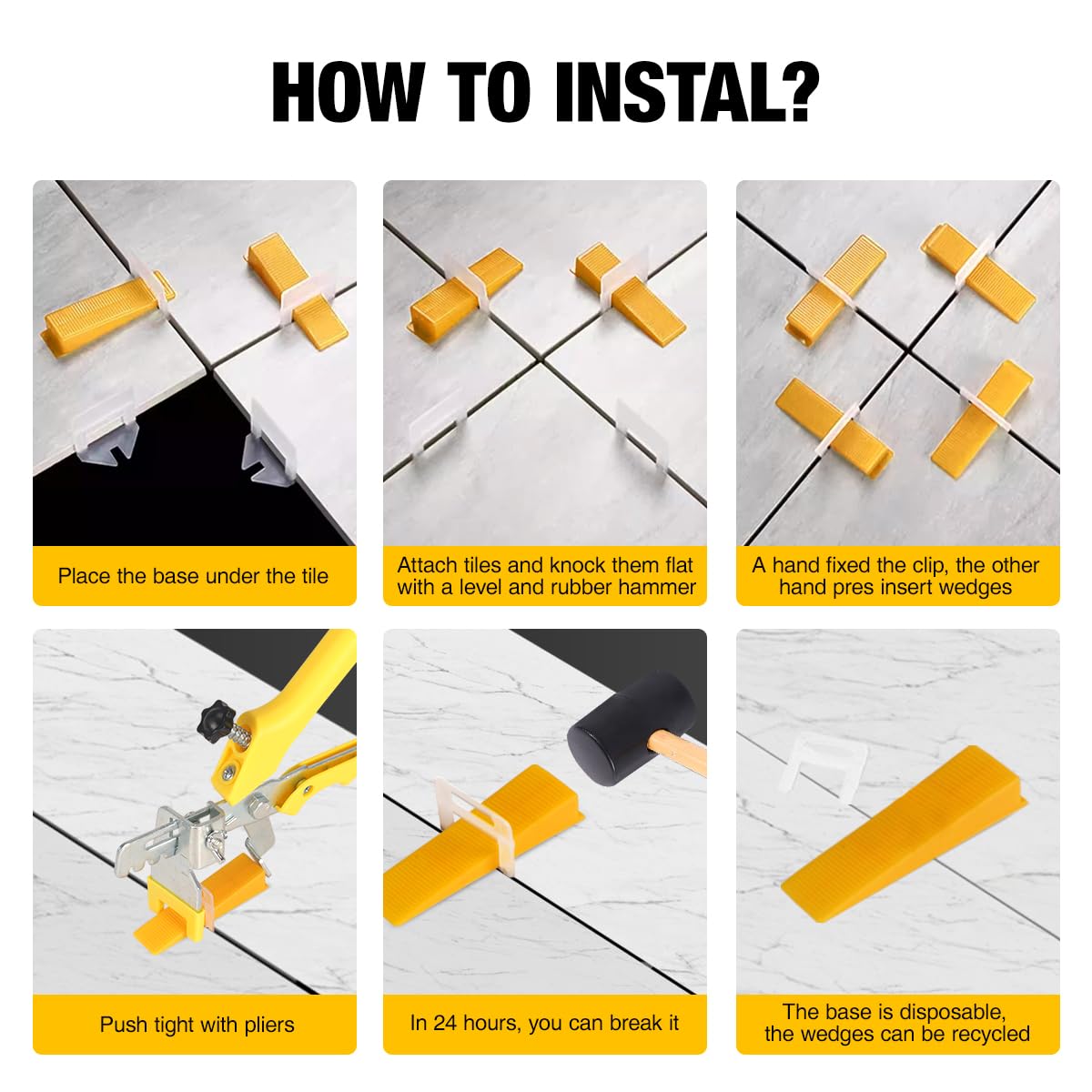 Beginner-Friendly & Efficient Application: Simple for anyone to use. Securely holds tiles and ensures easy installation and removal. Use 4 clips/wedges per standard tile; for larger tiles, use 6 or 8. Note: Allow 24 hours setting time, then gently kick or tap with a rubber mallet to remove leveling clips
