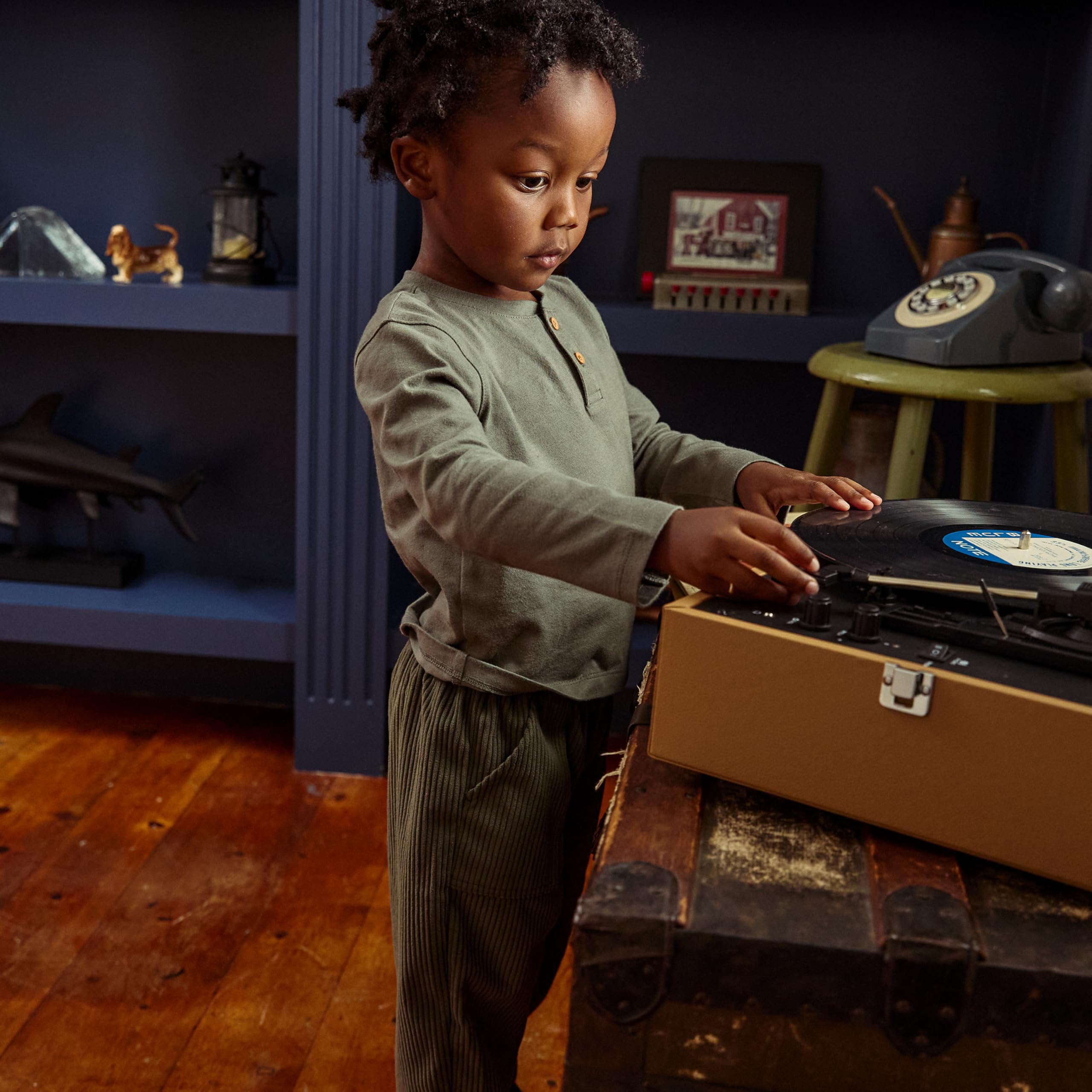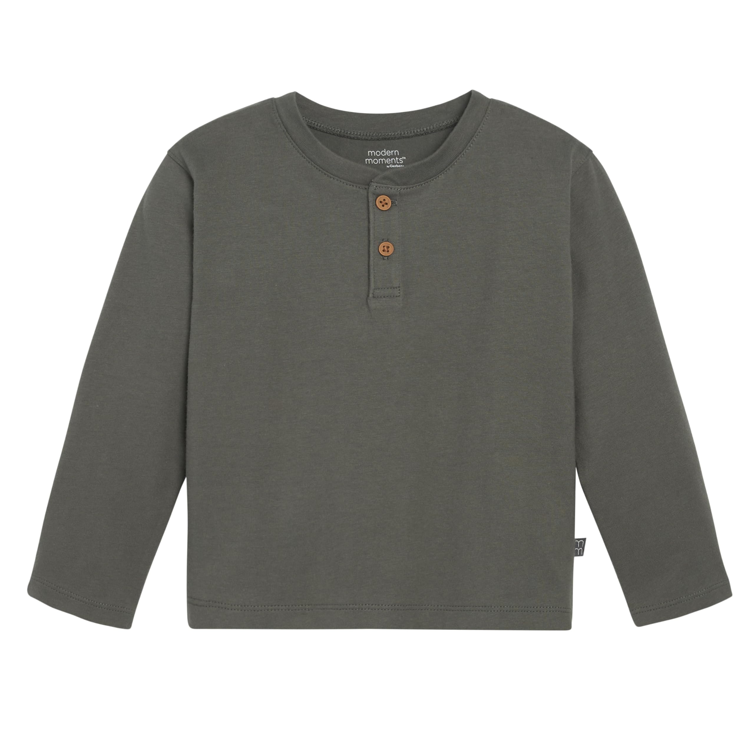 Description Get ready for cozy adventures with our baby or toddler long-sleeved Henley shirt and pants set, the perfect choice for cooler days! This matching outfit combines style and comfort, ensuring your little one stays warm and fashionable. The partial button-down Henley style shirt features faux wood buttons for a rustic touch, while the elastic at the pants' waistband offers a comfortable fit that accommodates your child's movements. Durable and soft, heβll look adorable and feel great in this Henley shirt and pants set.
