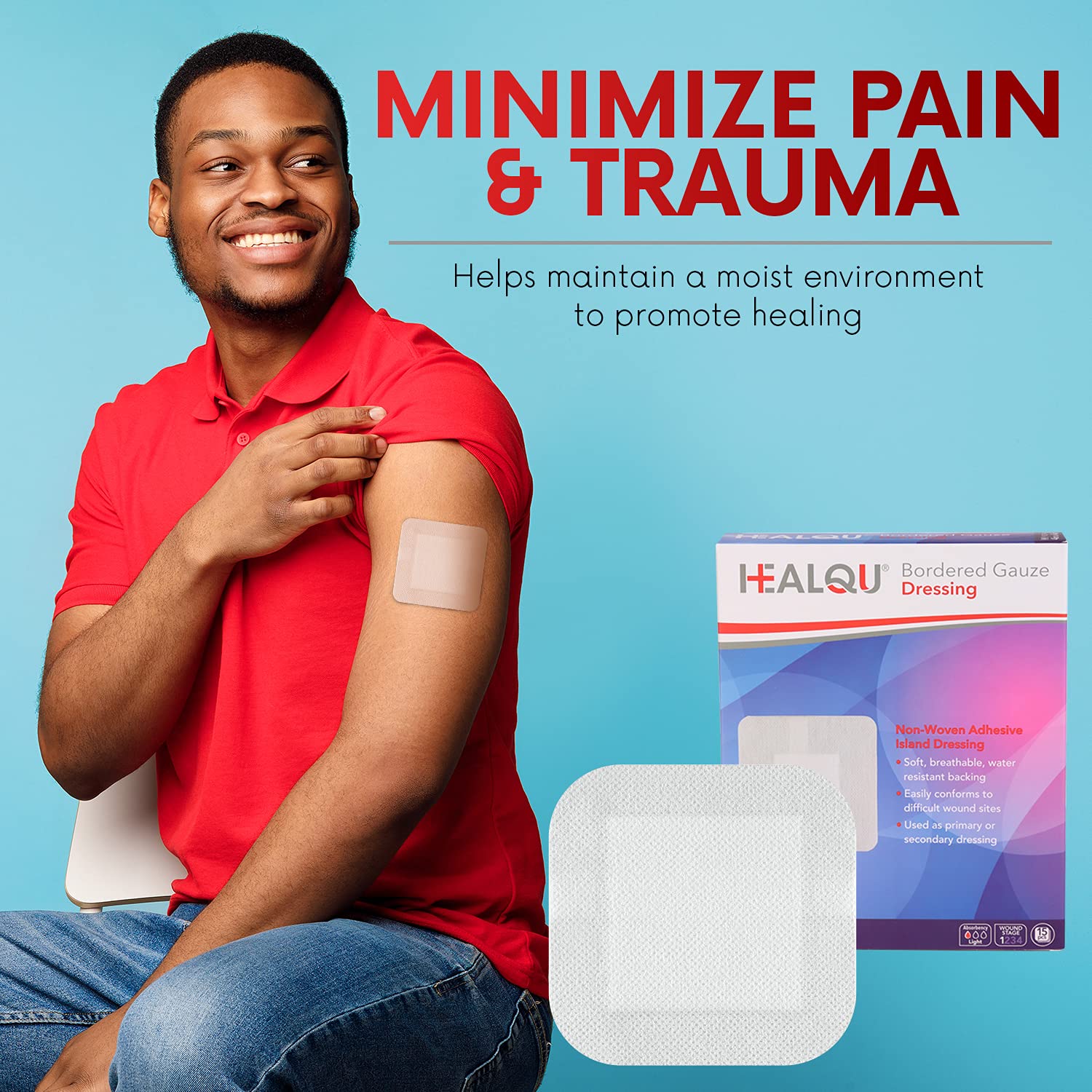 QUICK & EASY TO USE! Sticky around the edges but not in the middle, Healqu Bordered Gauze Island Dressings protect fresh cuts and scrapes without sticking to the wound, for good protection while healing. Simply peel & stick, and get on with the rest of your day!