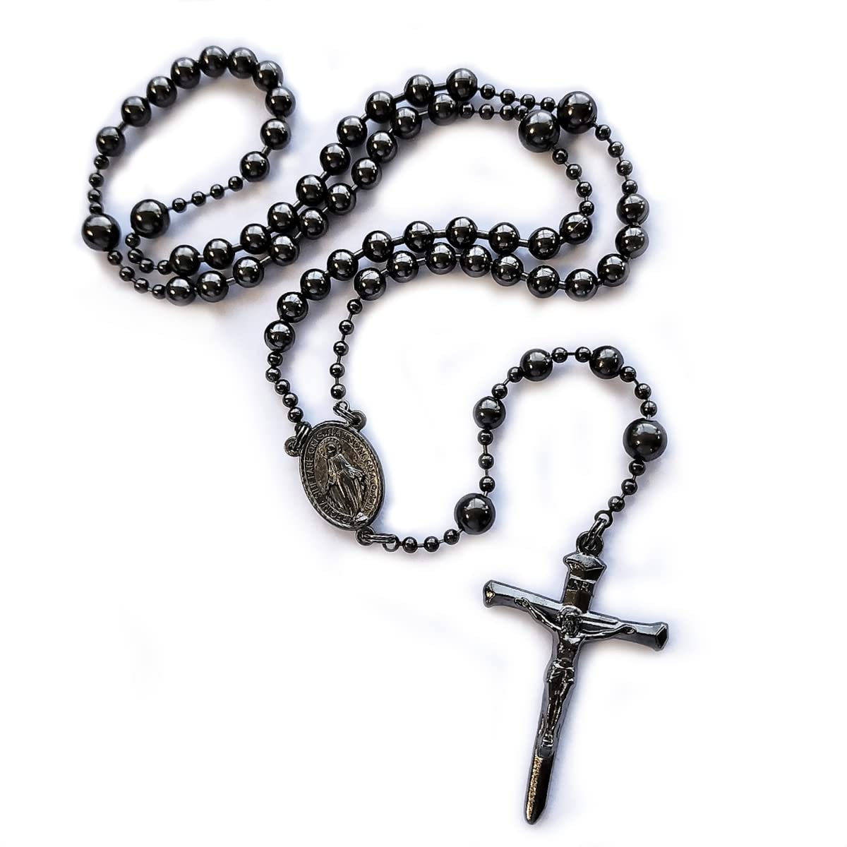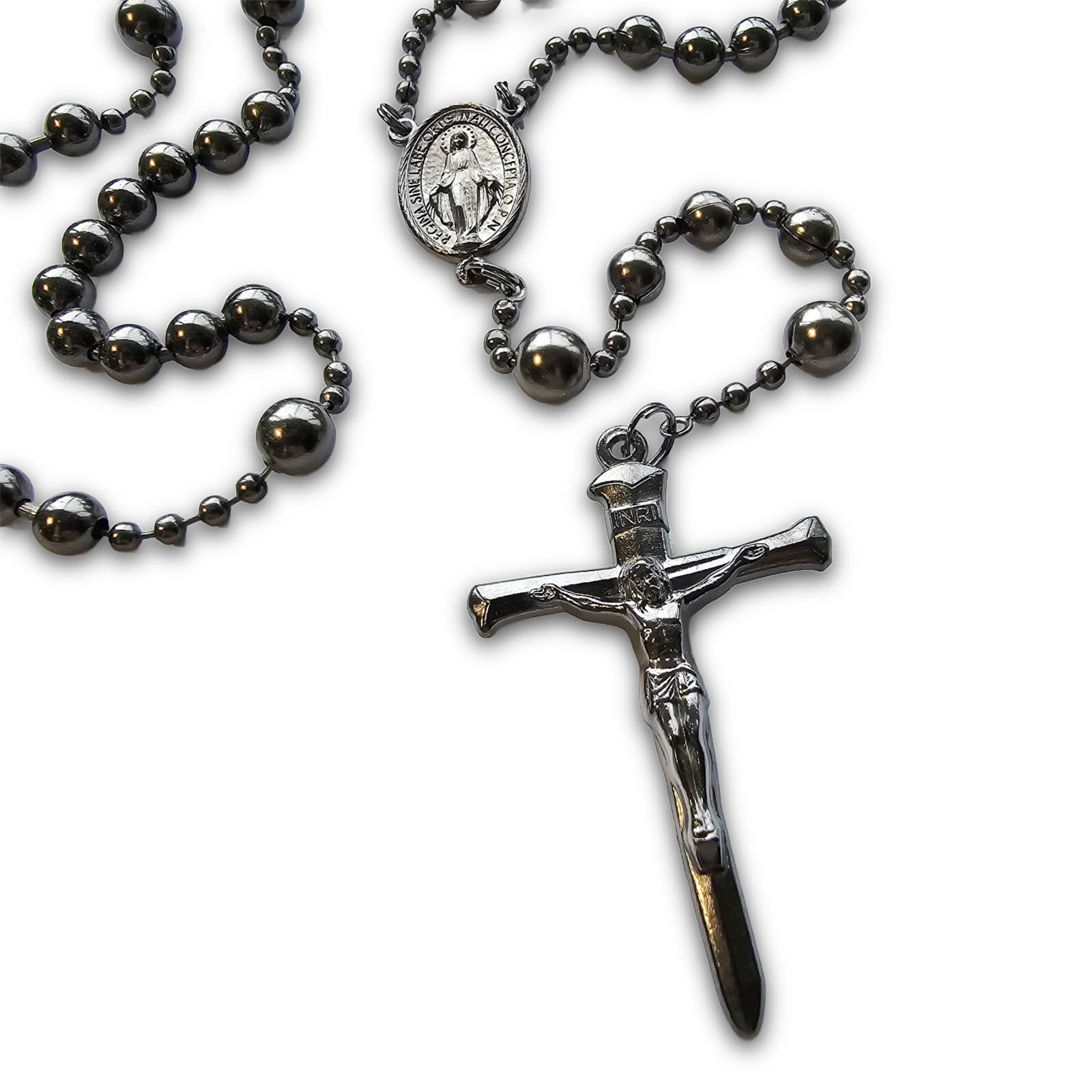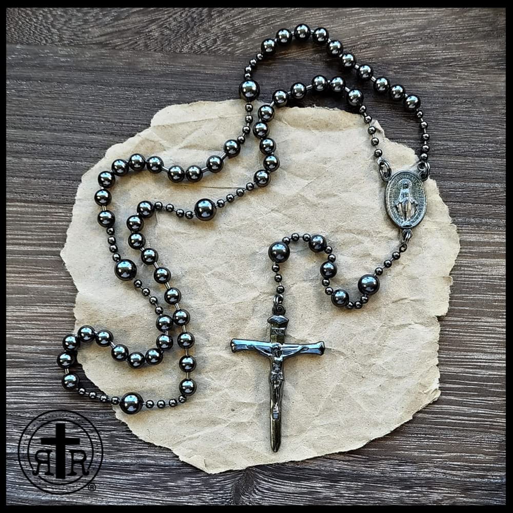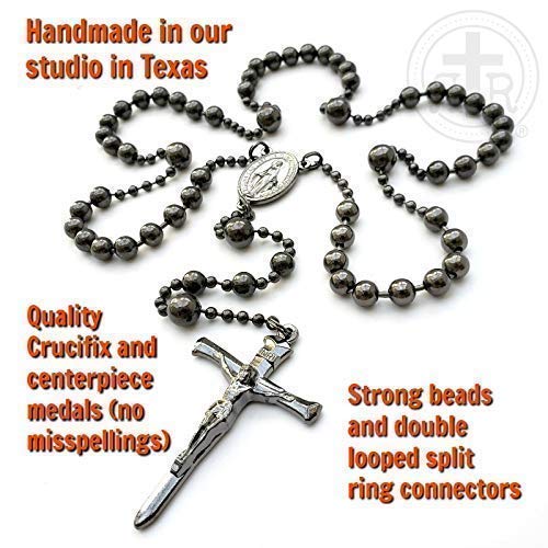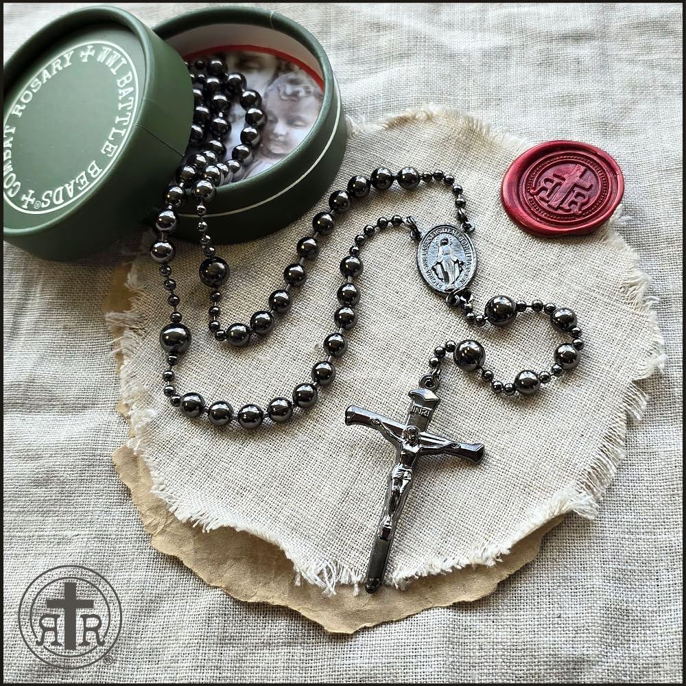 【CRAFTSMANSHIP】These WWI Battle Beads rosaries are handmade by the Rugged Rosaries’ artisans in our Texas studio since 2012. We use brass ball chains with gunmetal patina. They are strong, non-magnetic, non-corrosive, and weighty. The Our Father beads are slightly larger to aid your meditative prayer. The beads glide smoothly through your fingers.