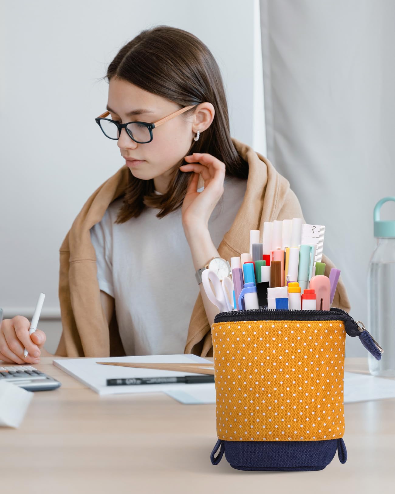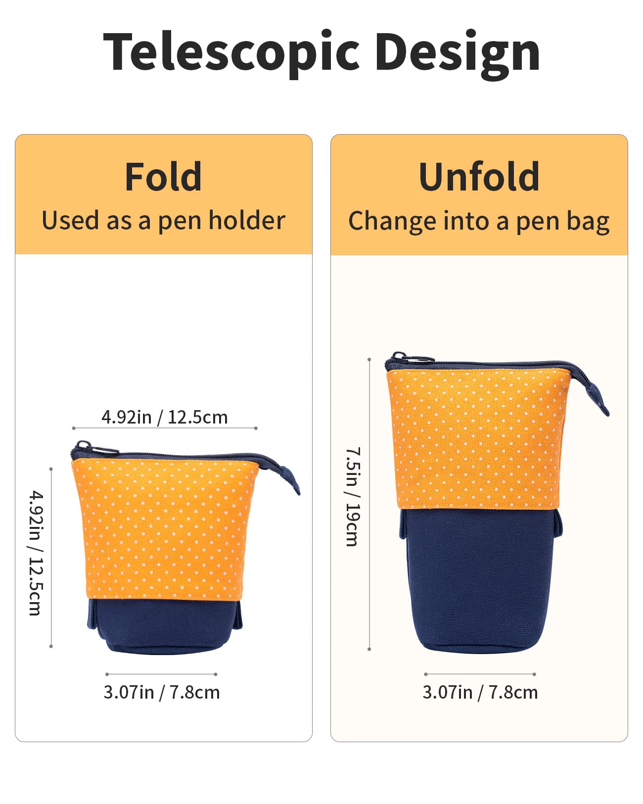 Novelty Standing Pencil Case: Combining a cute look with a retractable design, this cute pencil case definitely adds a touch of vibe to any workspace! Not only does it have a playful and fun feel, but it's roomy for stationery , cosmetics, etc.