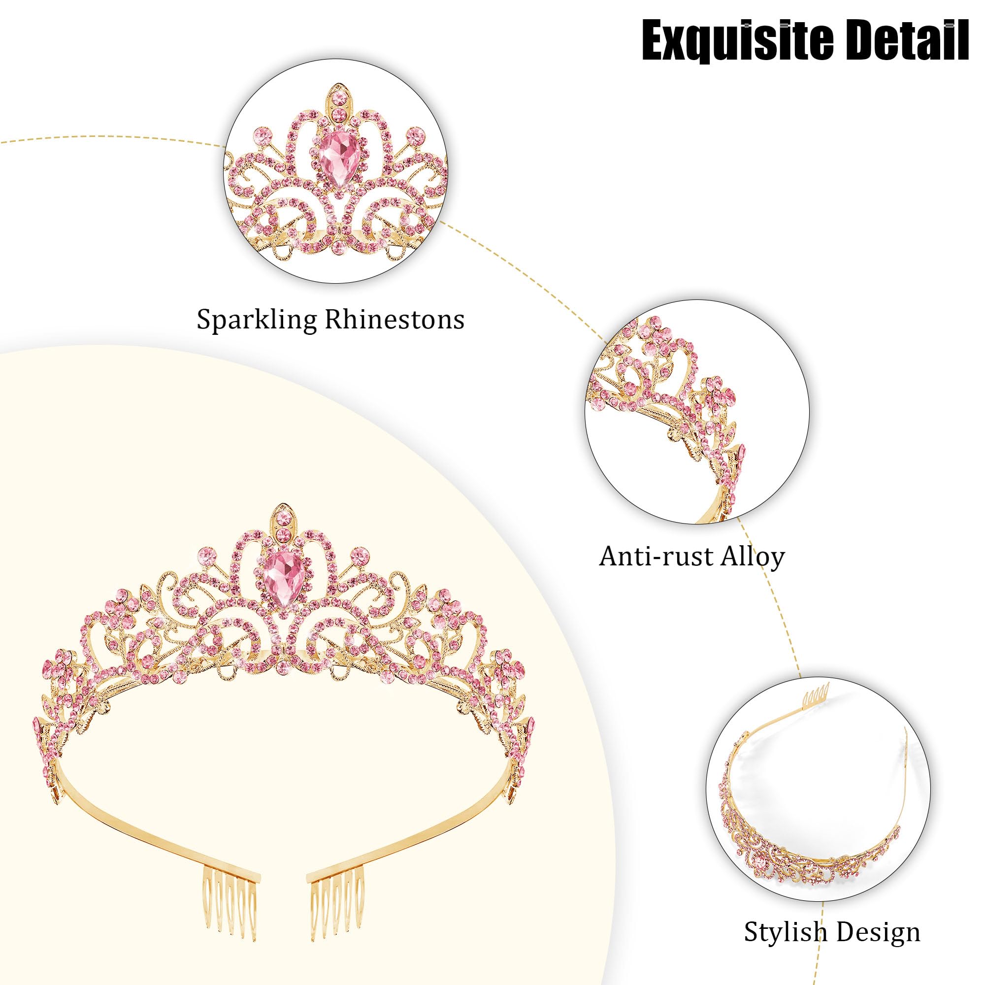 👑[Shine Like A Diamond] Pink tiaras for women are finely crafted, sparkling rhinestones shining more brilliantly in premium alloy's company. Classic style and design have a stylish and timeless appeal, bringing elegance and glamor.