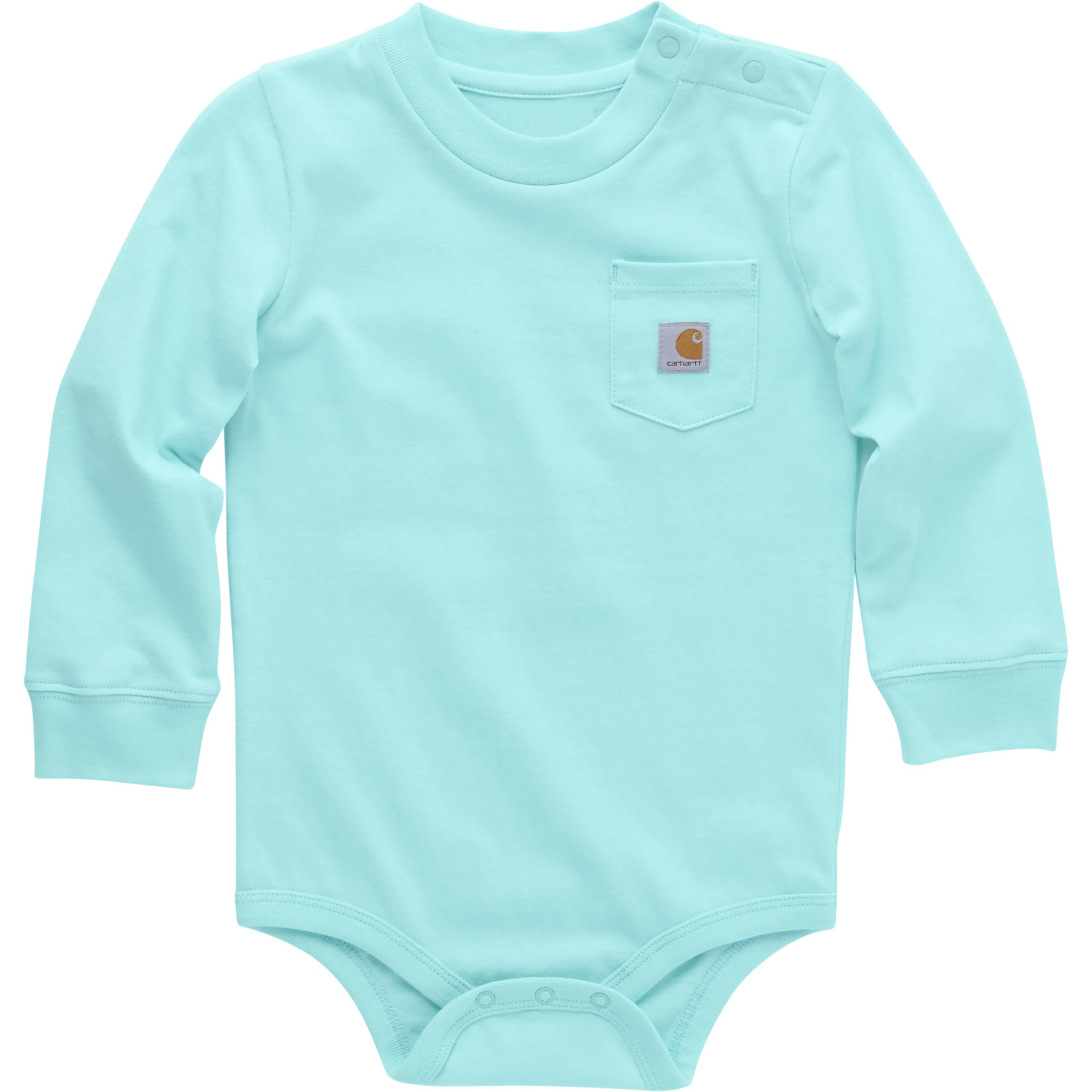 Description This long-sleeve cotton bodysuit from Carhartt is made for babies who are born to explore. Whether they’re rolling, crawling, or just snuggling up with a favorite blanket, this comfy one-piece delivers all-day softness and dependable durability. The 100% cotton fabric is gentle on sensitive skin and breathable enough to handle active days or cozy naps. Designed with parents and caregivers in mind, this bodysuit features shoulder snaps for easy on-and-off changes, plus bottom snaps to simplify diaper duty. The signature Carhartt logo patch on the front chest pocket adds a little rugged charm—perfect for little adventurers in the making. From everyday playdates and daycare to family gatherings and outings, this versatile baby tee//top layers beautifully under jackets or works on its own. The lavender color makes it a gender-neutral favorite, while the quality construction means it can be worn, washed, and passed down again and again. Whether you're shopping for your own little one or looking for a thoughtful baby shower gift, this Carhartt baby bodysuit blends style, comfort, and function in one perfect piece.