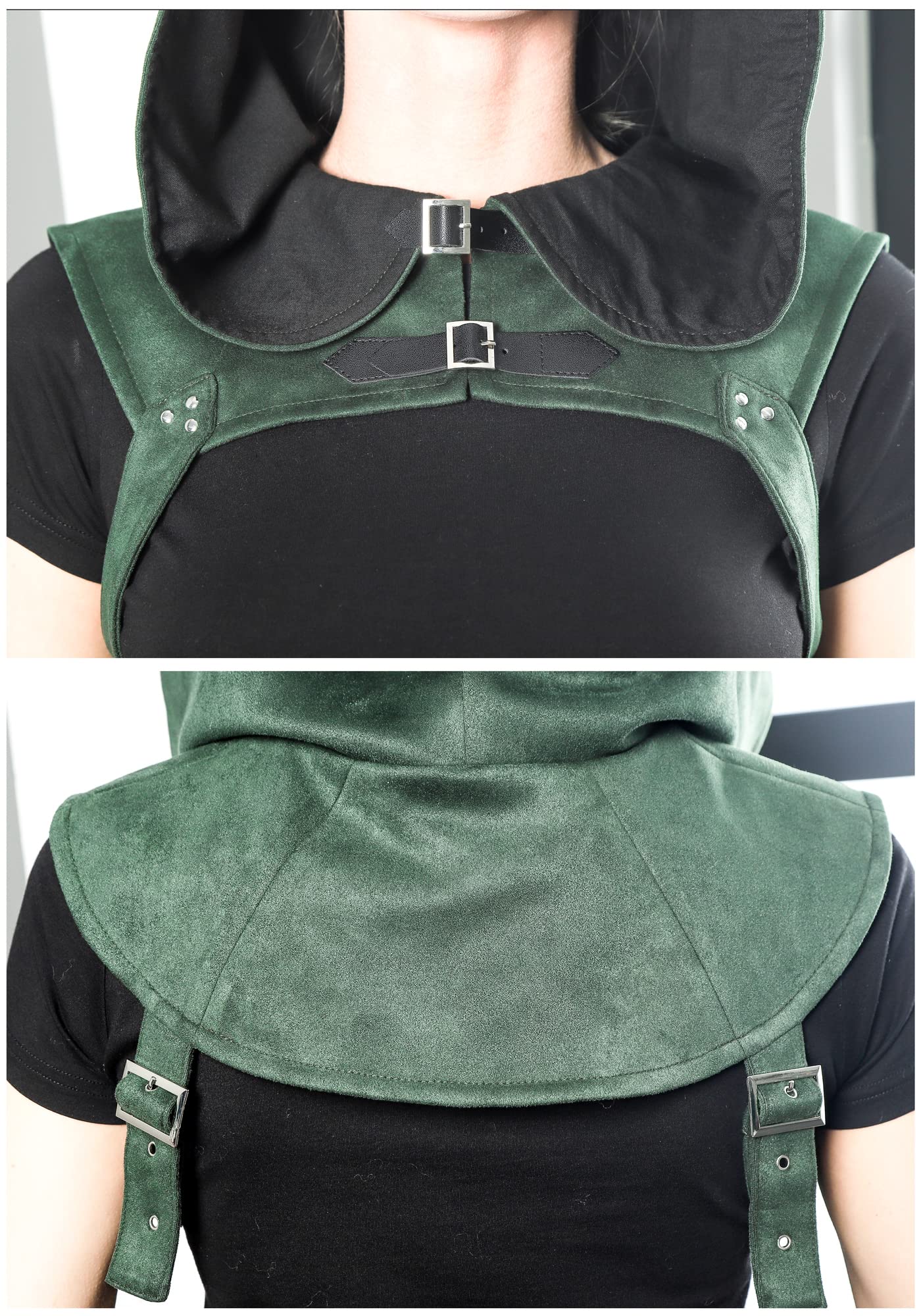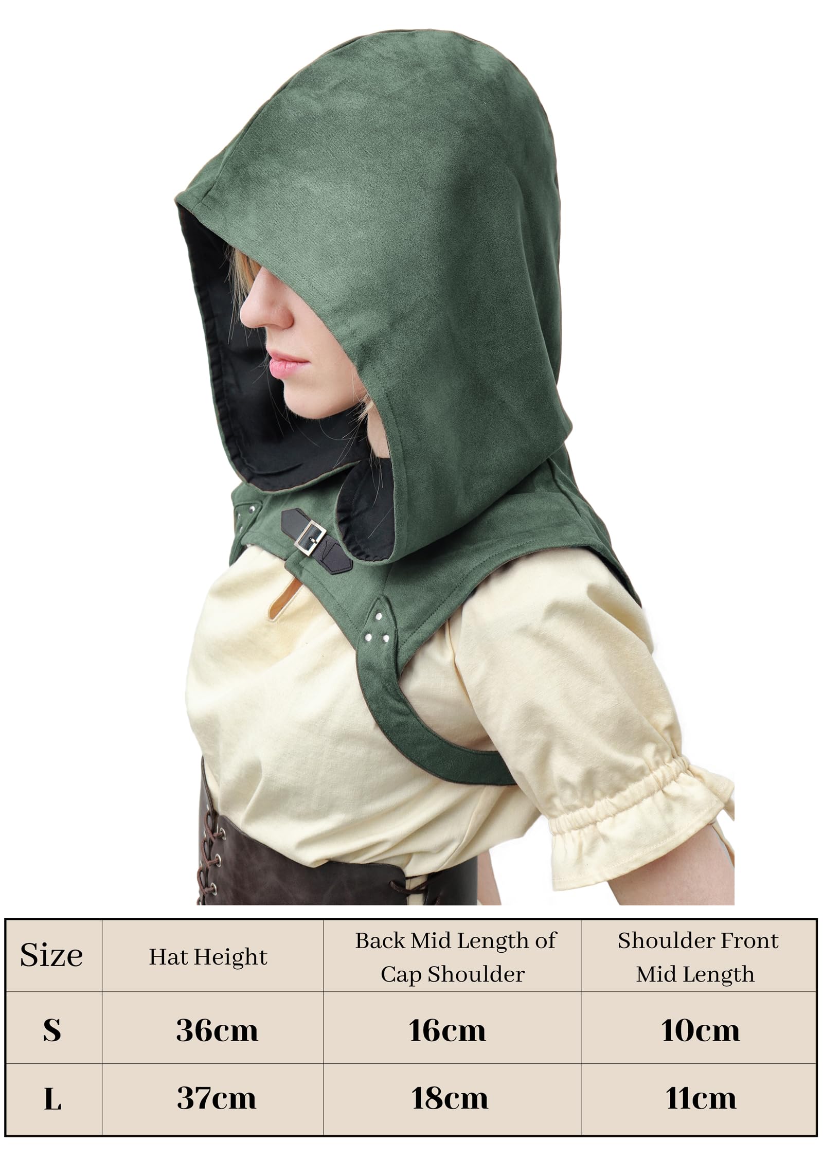Easy to Wear: This medieval cloak cap is fixed with adjustable length straps and buttons. This design meant that the medieval hood would not be easy to slip off, and the button design makes the cloak more cool and fashion