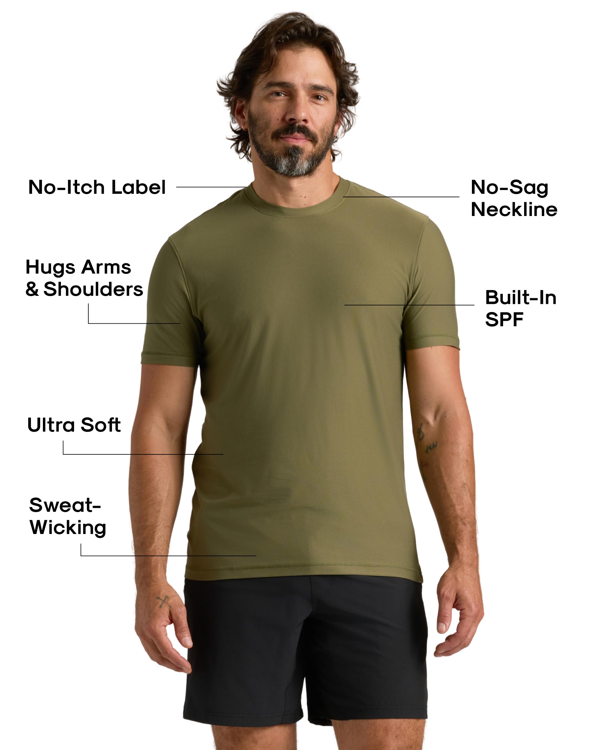 STAY COOL & DRY: Built-in moisture wicking and quick-dry fabric keep you fresh from warmups to cool downs. Breathable polyester-spandex blends help regulate airflow, making these gym shirts men rely on for all-day comfort.
