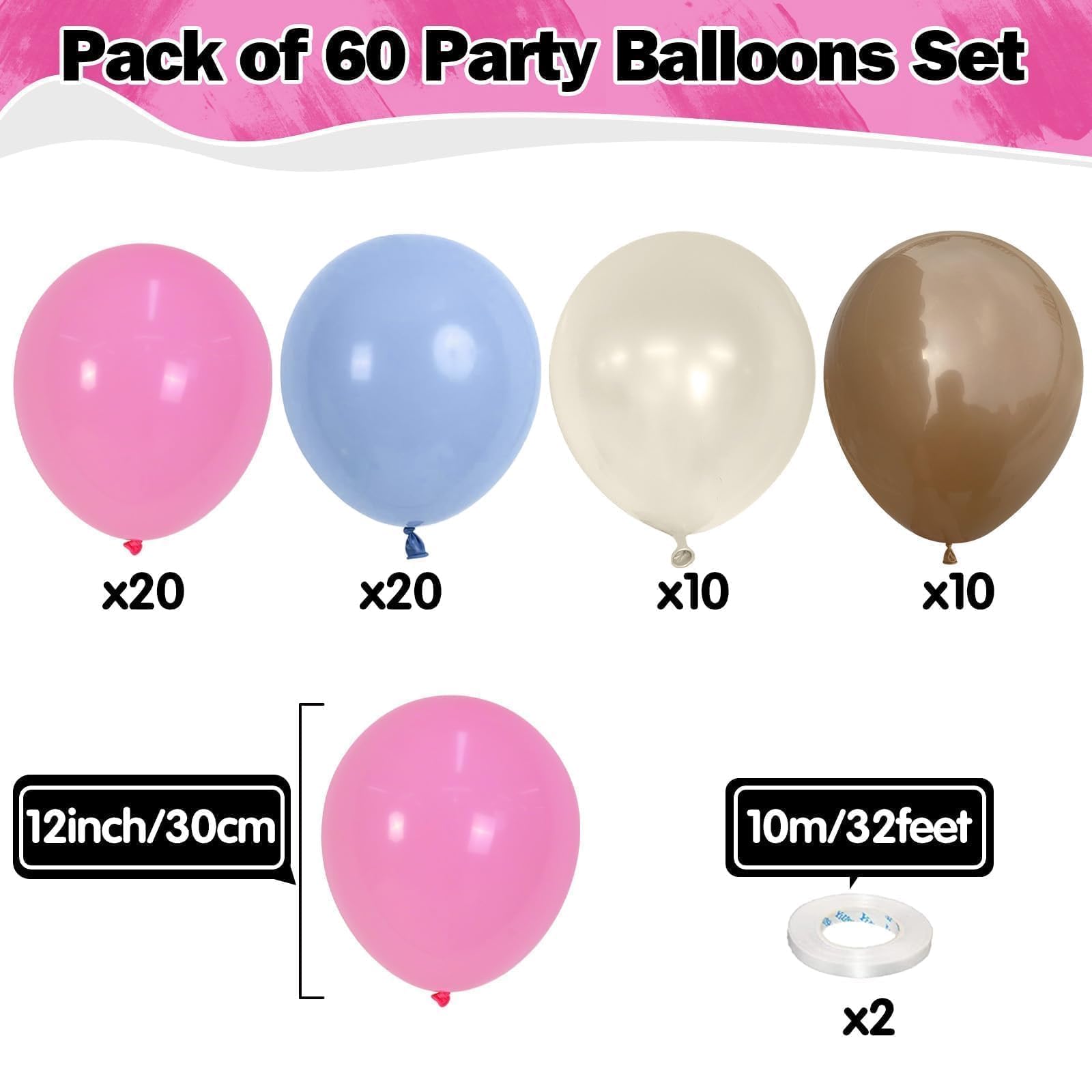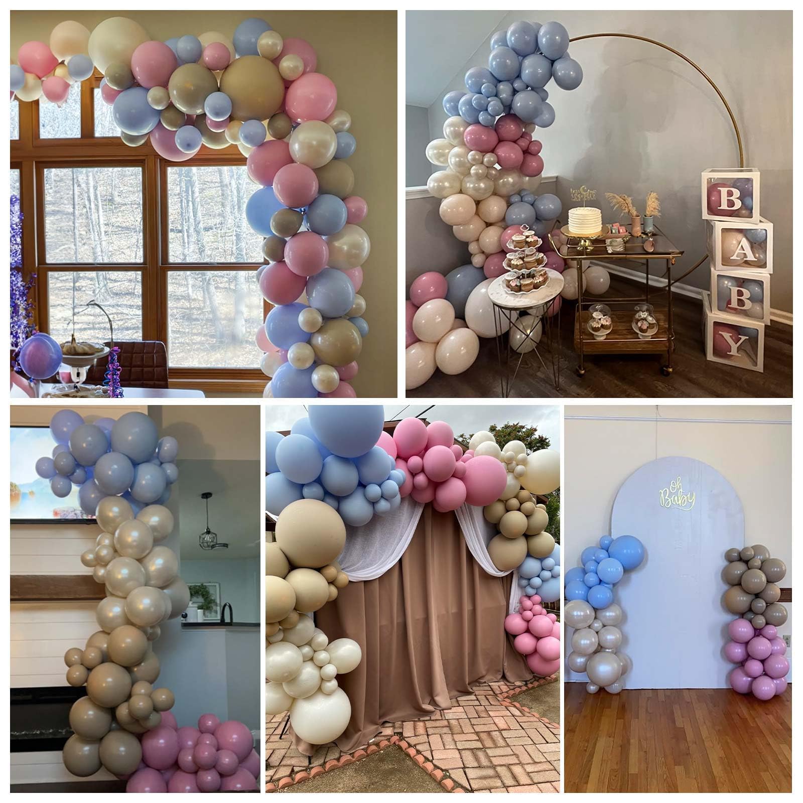 🎈Package Includes - You'll get 60 pieces 12 inch party balloons (20pcs retro pink balloons, 20pcs dusty blue balloons, 10pcs brown balloons, 10pcs pearl sand white balloons) and 2 rolls of 10m ribbons, which are enough to decorate your party to keep it interesting, these dazzling colors will make your party very attractive, a great way to decorate any theme party. You can make your balloon backdrop, balloon arch garland kit, balloon bouquet, home or table decorations and more.