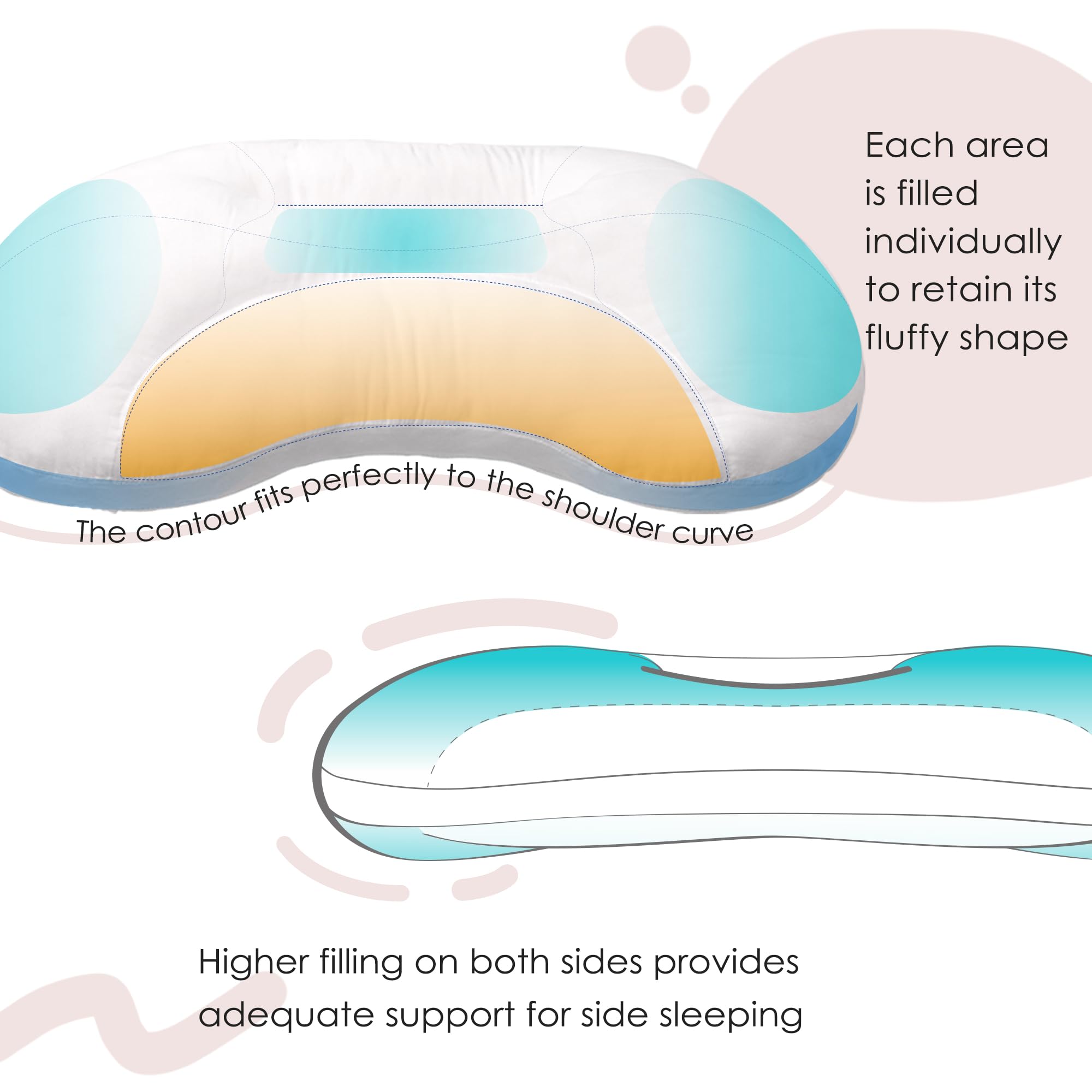 QUILTED KIDS NECK PILLOW: This pillow is quilted to divide the back and side sleeping areas, and each area is filled separately, so the pillow keeps its shape and provides constant support. It won't become flat and lumpy like a regular toddler pillow after a period of use.