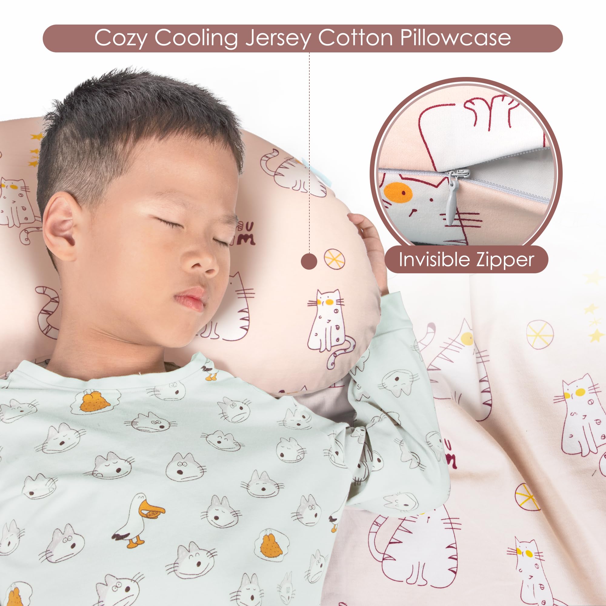 MACHINE WASHABLE PILLOWCASE INCLUDED: Soft, breathable, cool jersey cotton pillowcase maximizes sleep comfort. It is especially friendly to hot sleepers and kids' tender skin.