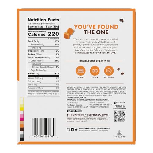 CAFFEINATED CARAMEL MACCHIATO PROTEIN BAR: Enjoy a protein packed ONE caramel macchiato flavored bar for breakfast or lunch or bring it with you to the office or gym for a pre- or post-workout snack
