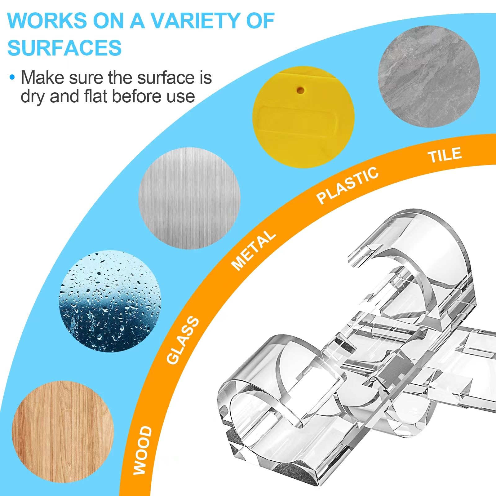 【Cable Clip Size】Length 1.29 inches, width 0.51 inches, height 0.28 inches, For cables with wire diameters of 0.28 inches and below, these adhesive cord clips can be perfectly applied to tile, plastic,glass, wood, metal surfaces.