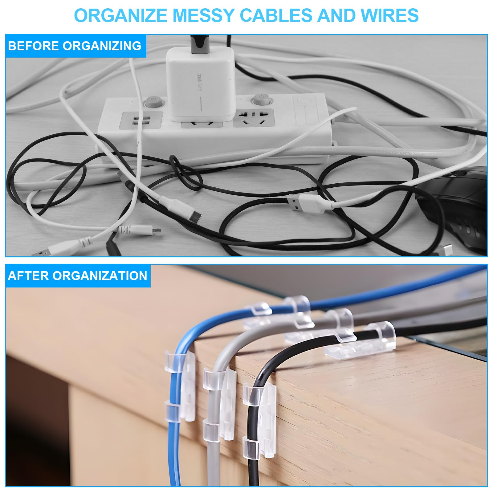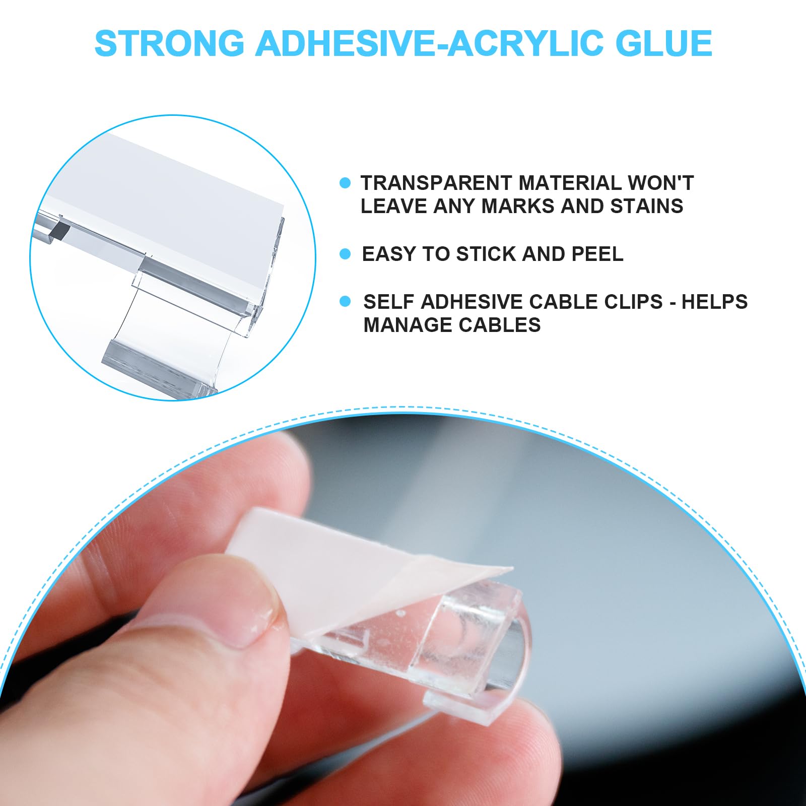 【Self-adhesive cable clips】 Our cable organizer clips are equipped with strong transparent adhesive pads, just stick the adhesive pads on the wire fixer cable clips to use, very convenient and leave no trace after removal.