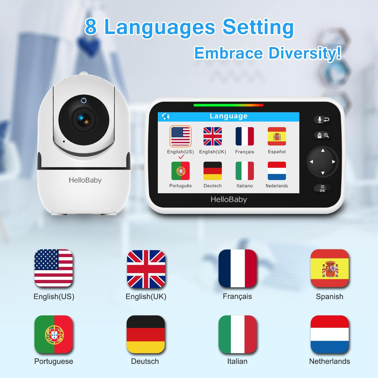 HelloBaby No WiFi Baby Monitor 5" Screen 30-Hour Battery Pan-Tilt-Zoom Video Upgrade with Camera and Audio, Night Vision, VOX, 2-Way Talk, 8 Lullabies and 1000ft Range, HB6550